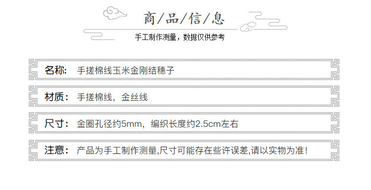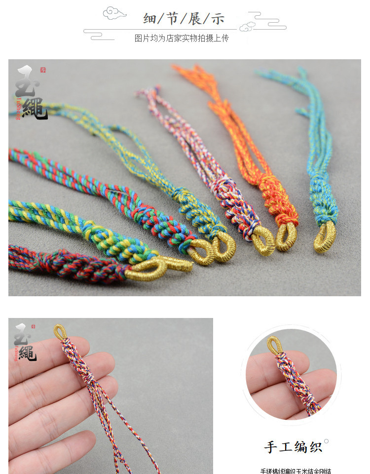 Hand-rubbed cotton thread Diamond corn knot small tassel ear hand-woven bracelet necklace rope jewelry accessories bag hanging gold