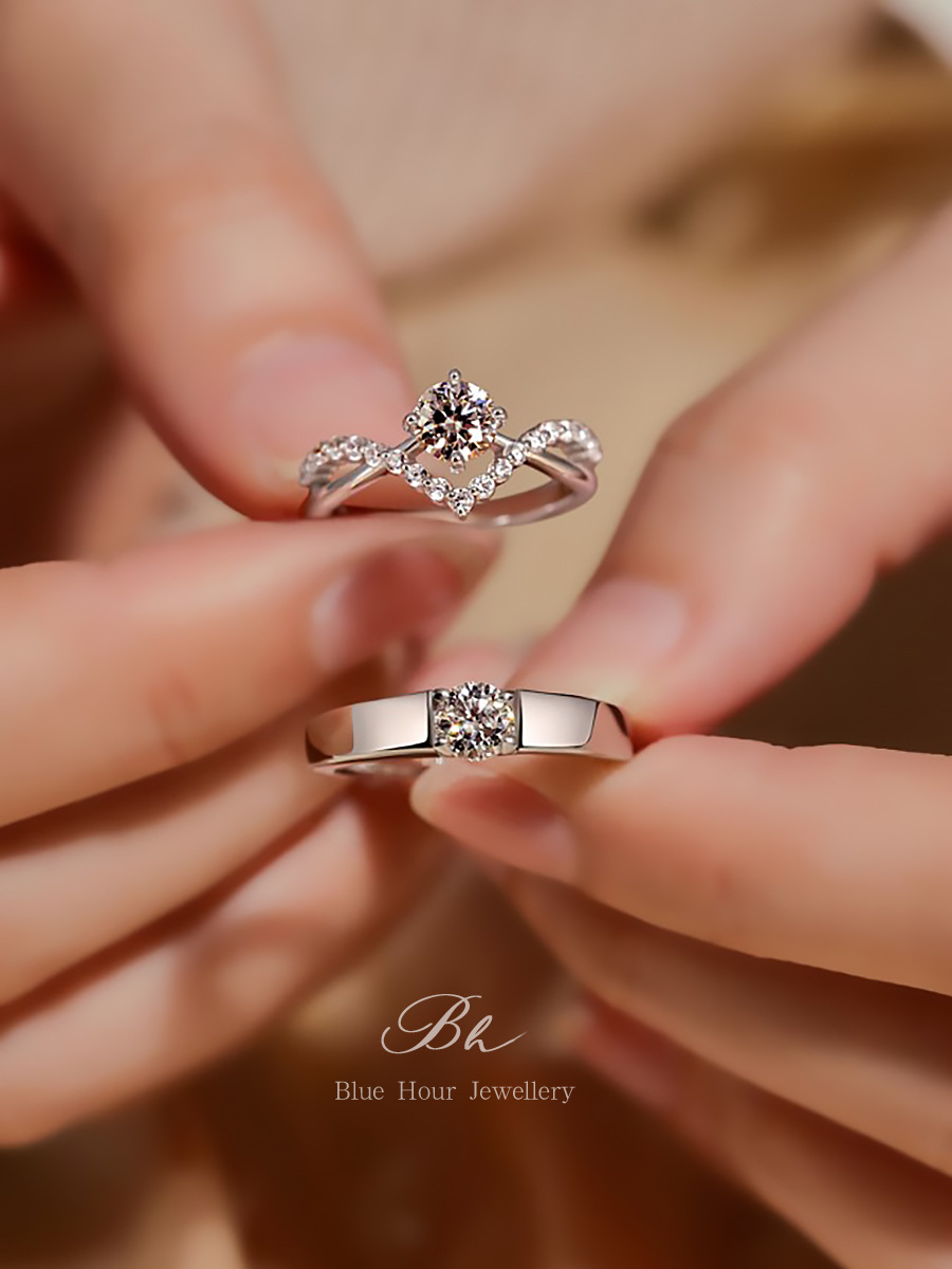 For the love Coronation couple ring men and women a pair of open mouth s925 silver Mozan high sense of wedding ceremony