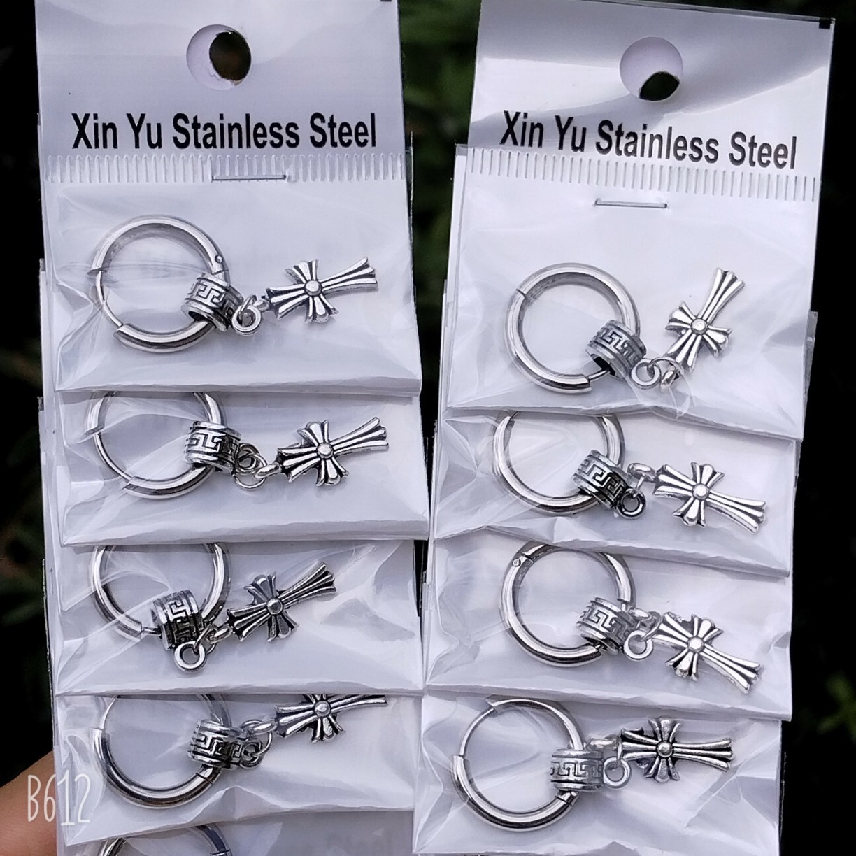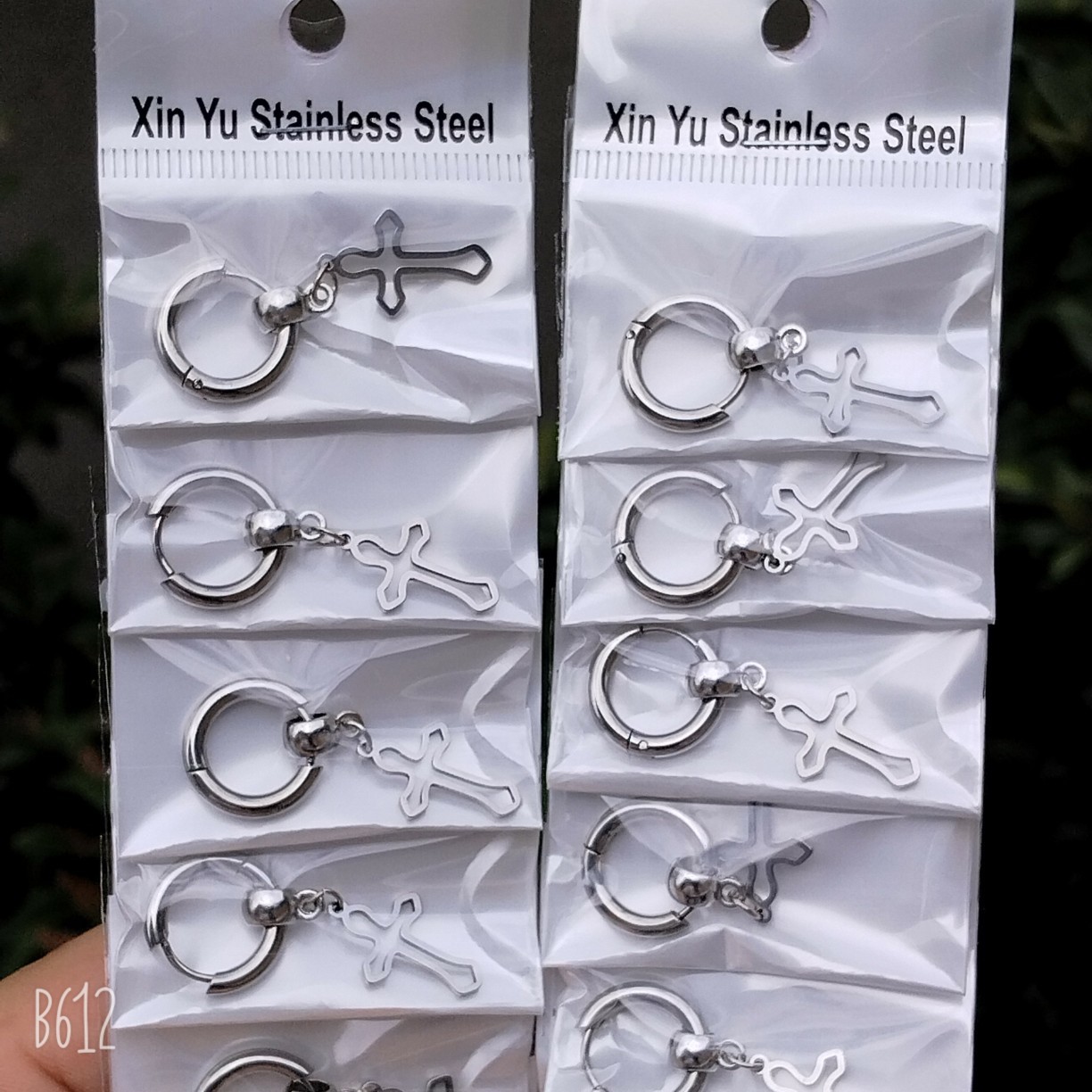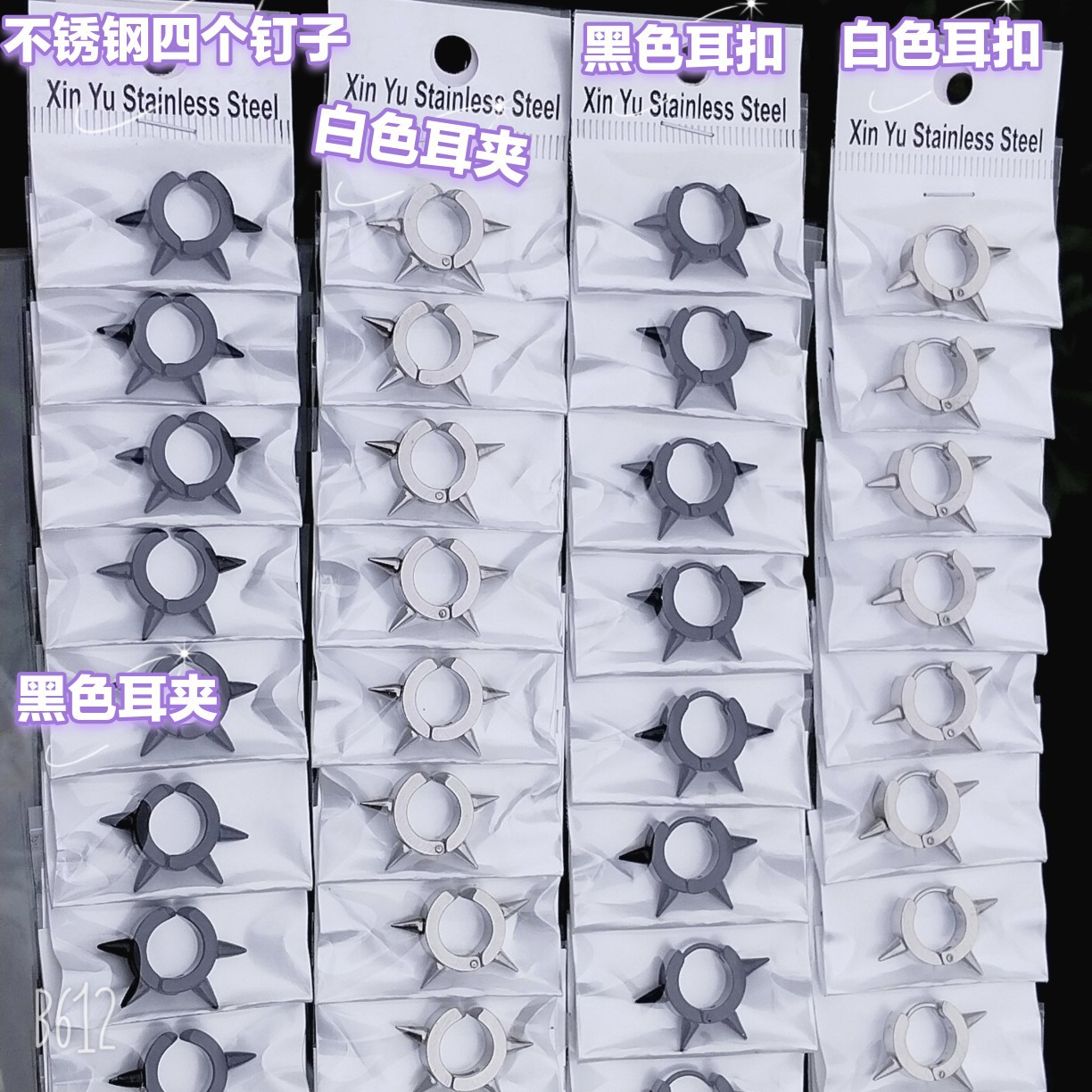 Color: Black - ear buckle hanging three-dimensional cross stainless steel