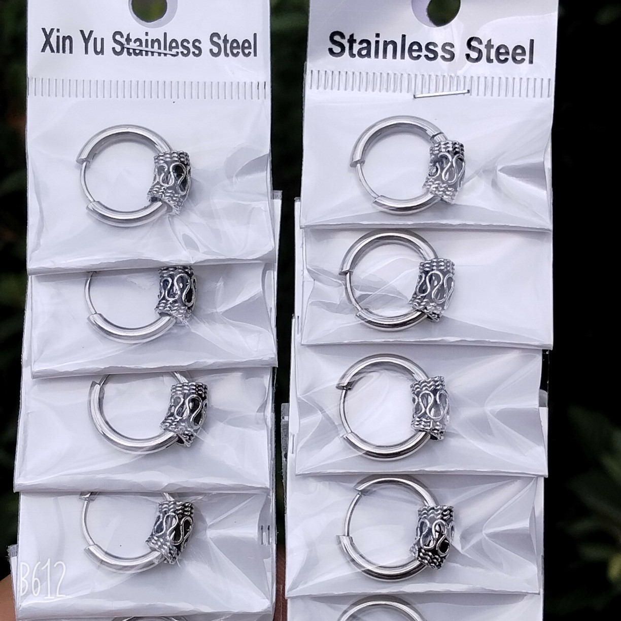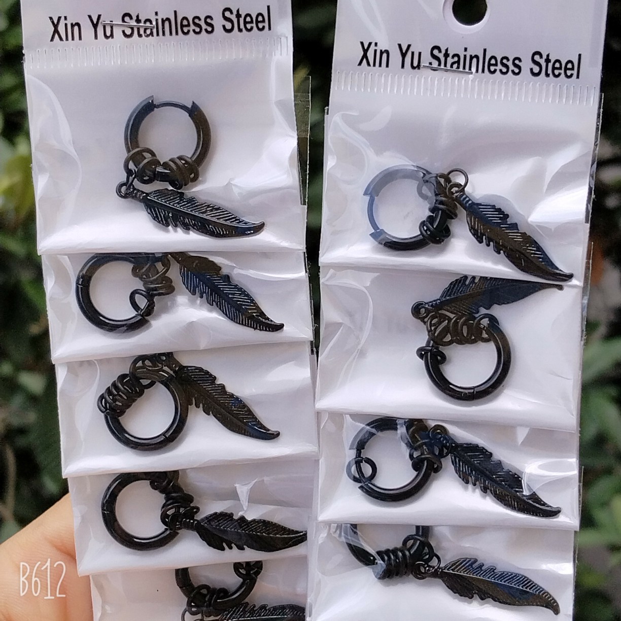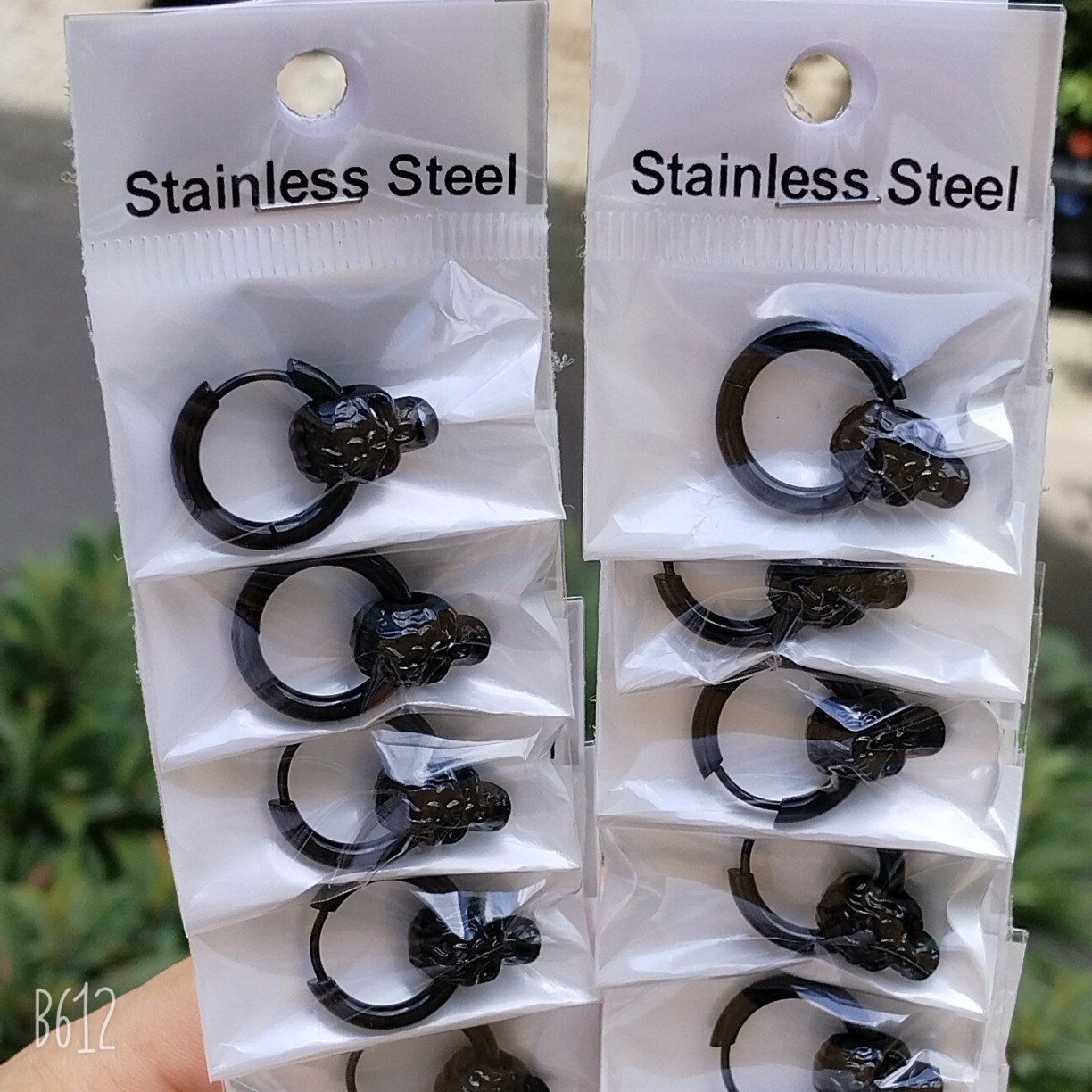 Color: Black - ear buckle hanging three-dimensional cross stainless steel