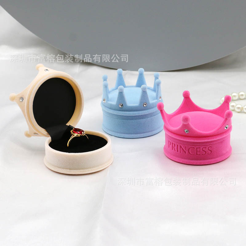 Cute Simple Crown Flocking Jewelry Box Proposal Confession Creative Ring Box Pendant Necklace Jewelry Storage Box