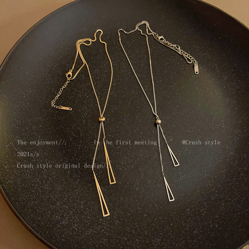 Korean Wave Geometric Triangle Necklace Women's Fashion Autumn and Winter Niche Long Tassel Accessories Light Luxury Elegant Sweater Chain