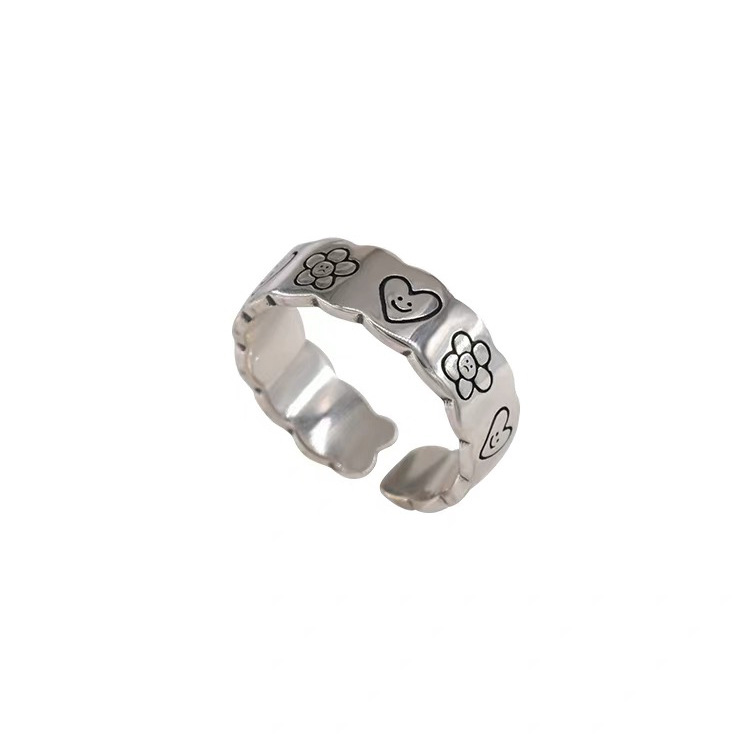Irregular Metal Smiley Face Flower Opening Ring for Women Retro Personalized Simple All-match Elegant Fashion Ring Ring Ring