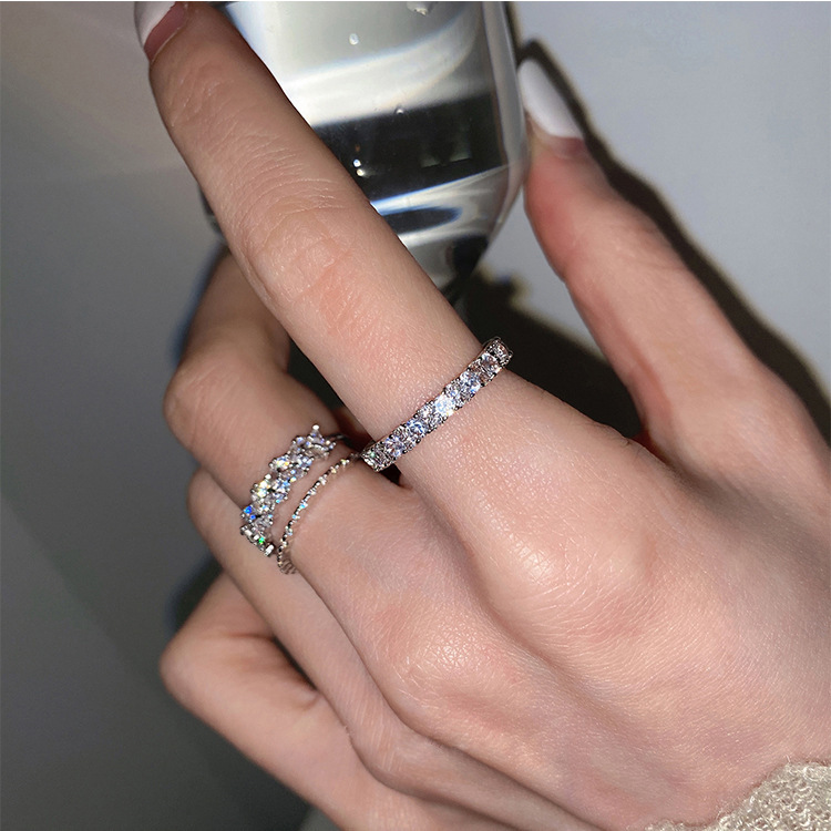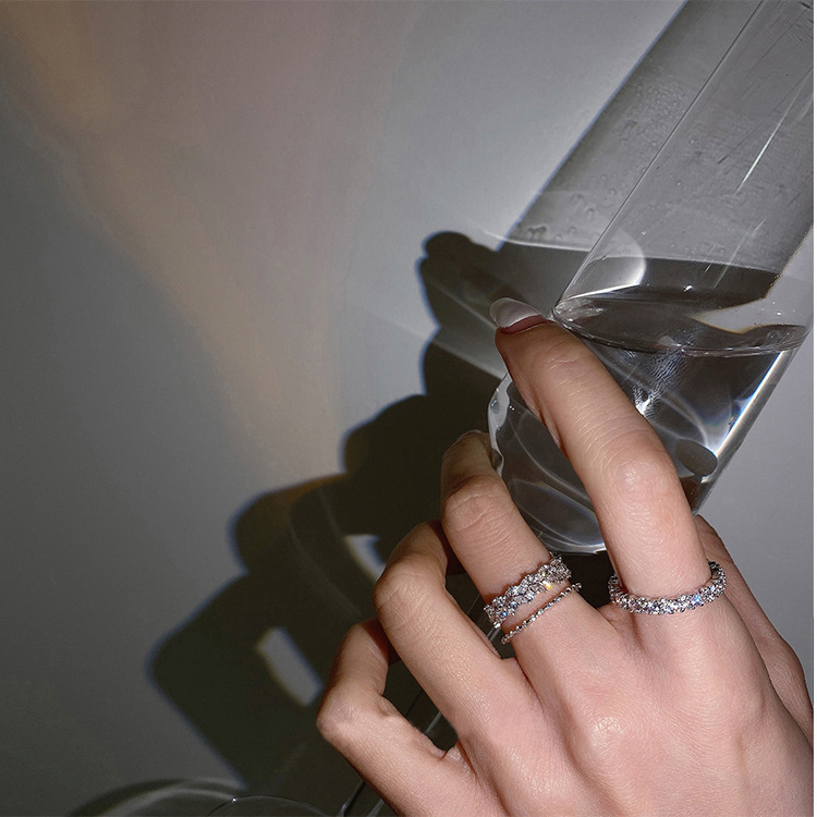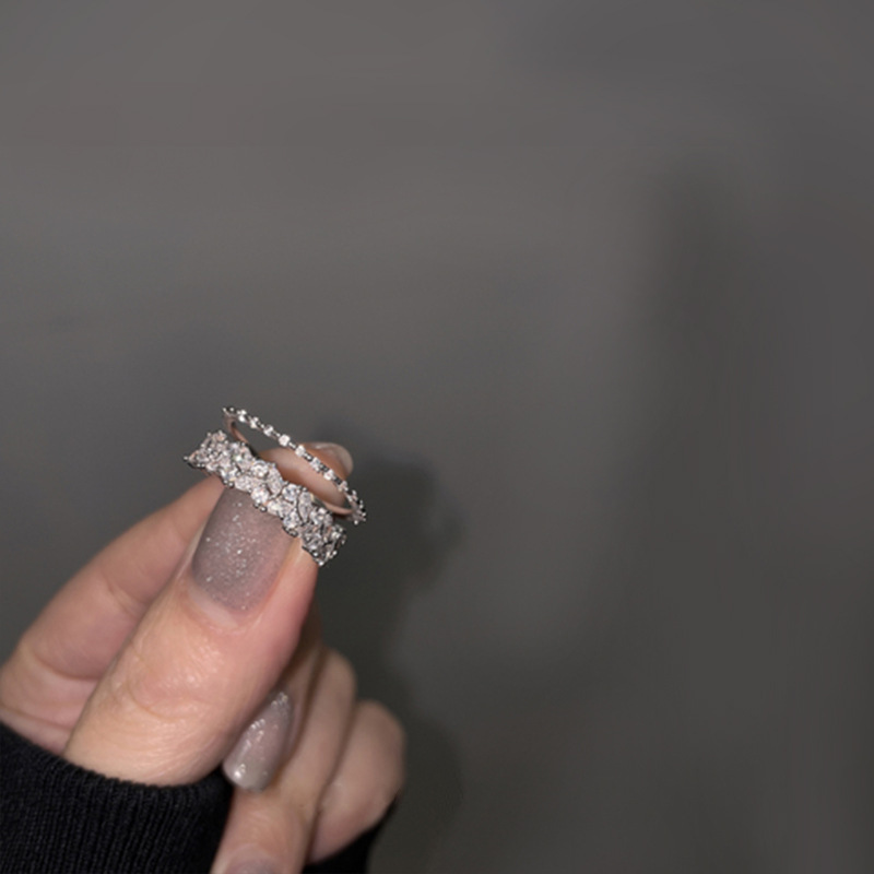 Korean Style Multi-Layer Diamond Ring Women's Opening Adjustable Fashionable Distinctive Index Finger Ring Niche Design Simple Jewelry