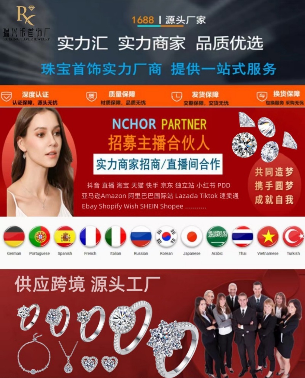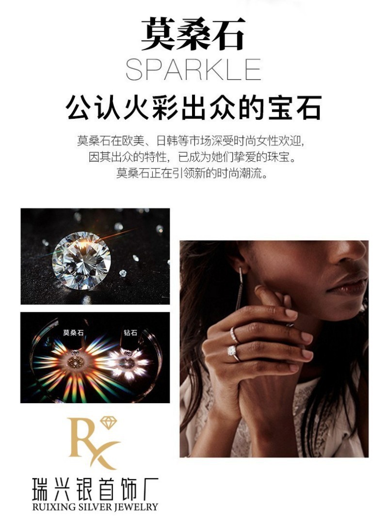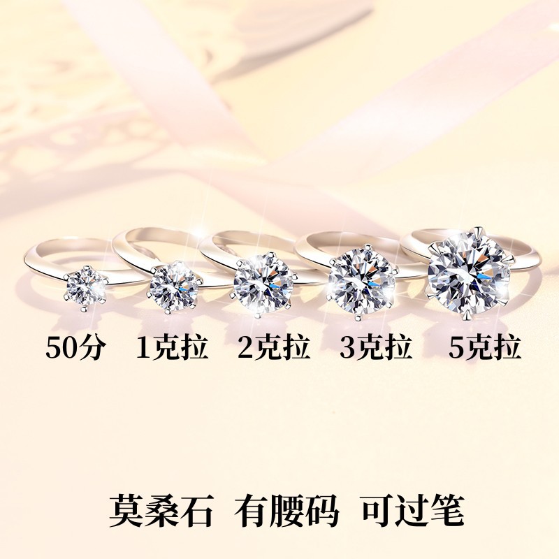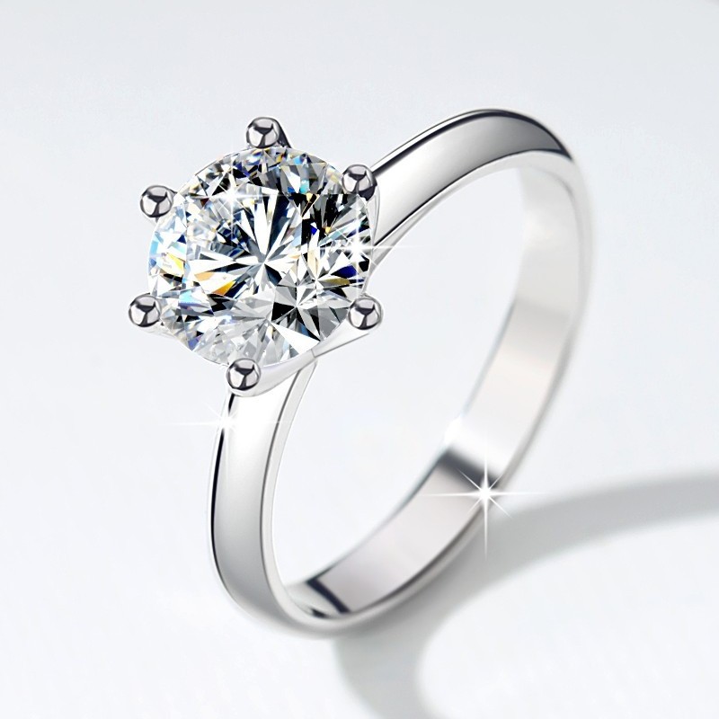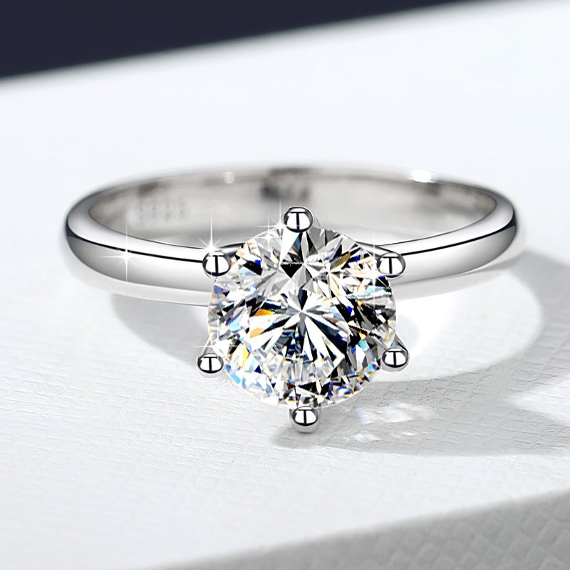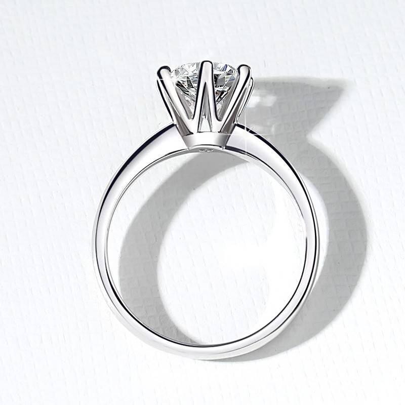 T's Six-Claw Moissanite Ring 1/2/3/5 Carat Classic Simple Jewelry Cross-Border Fashion S925 Sterling Silver Ring