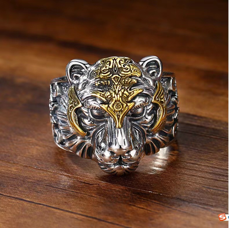 Retro Thai silver domineering personality Tiger Ring men's atmospheric hip-hop tide Tiger Men's live finger ring a generation of hair