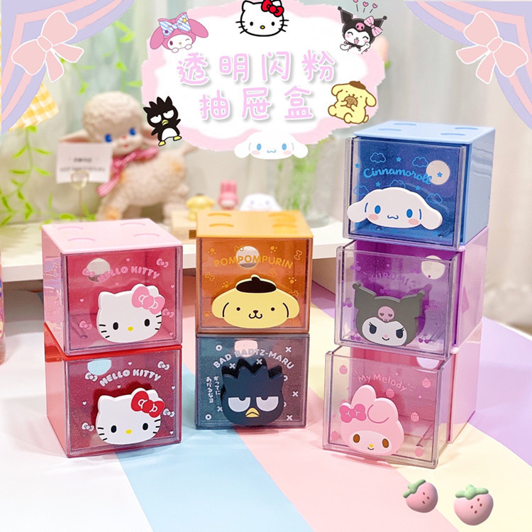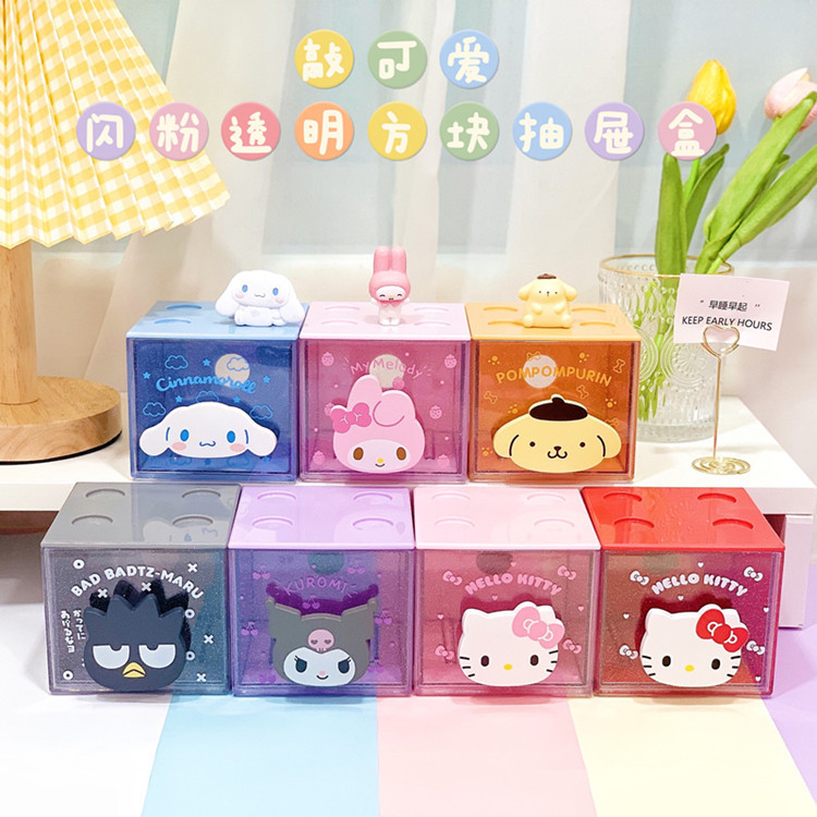 新款!新款 敲可爱萌物【透明款带闪粉】的方块造型可叠加拼图小抽屉盒 桌面杂物收纳盒【共 7 图】