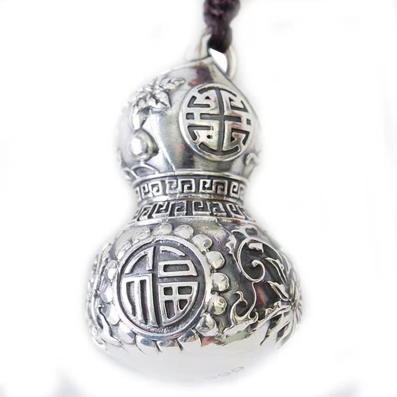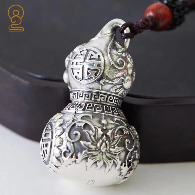 999-foot silver gourd pendant men's sterling silver necklace women's hollow openable pendant vintage silver jewelry couple pendant