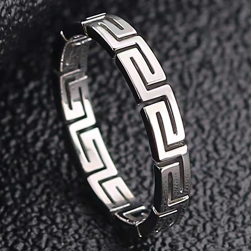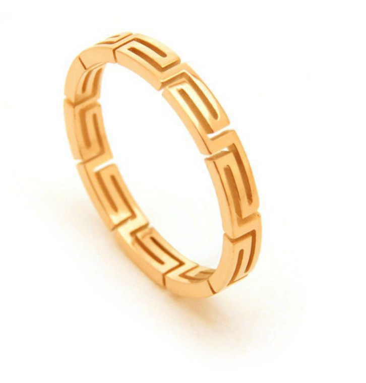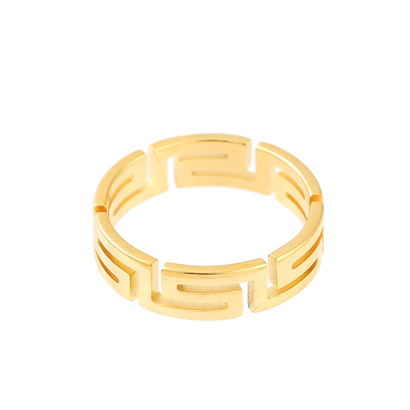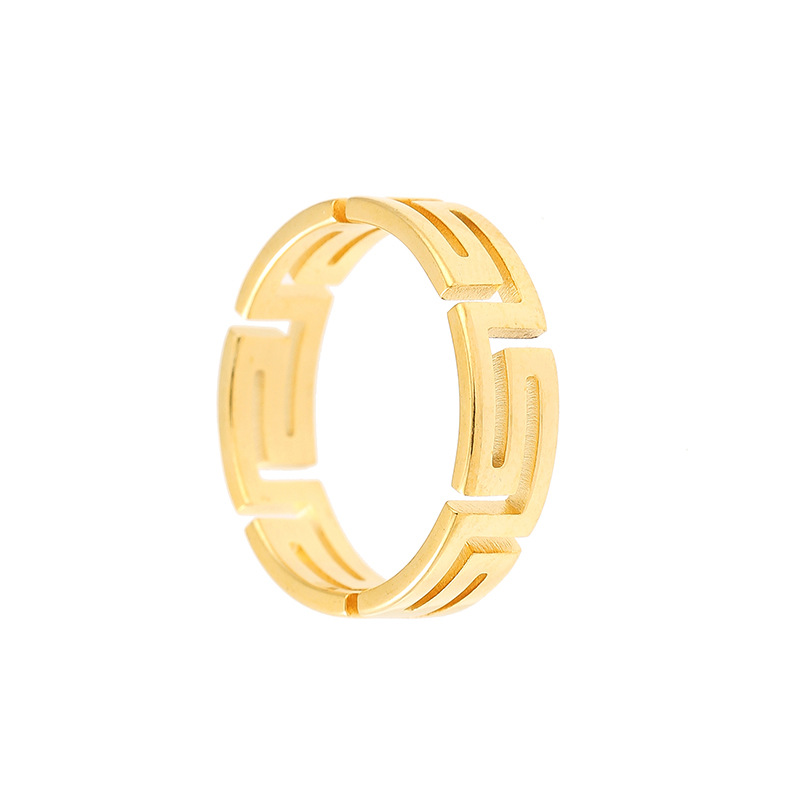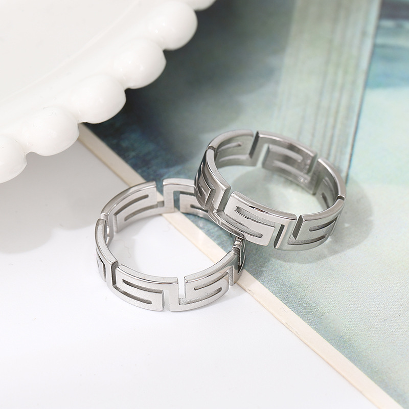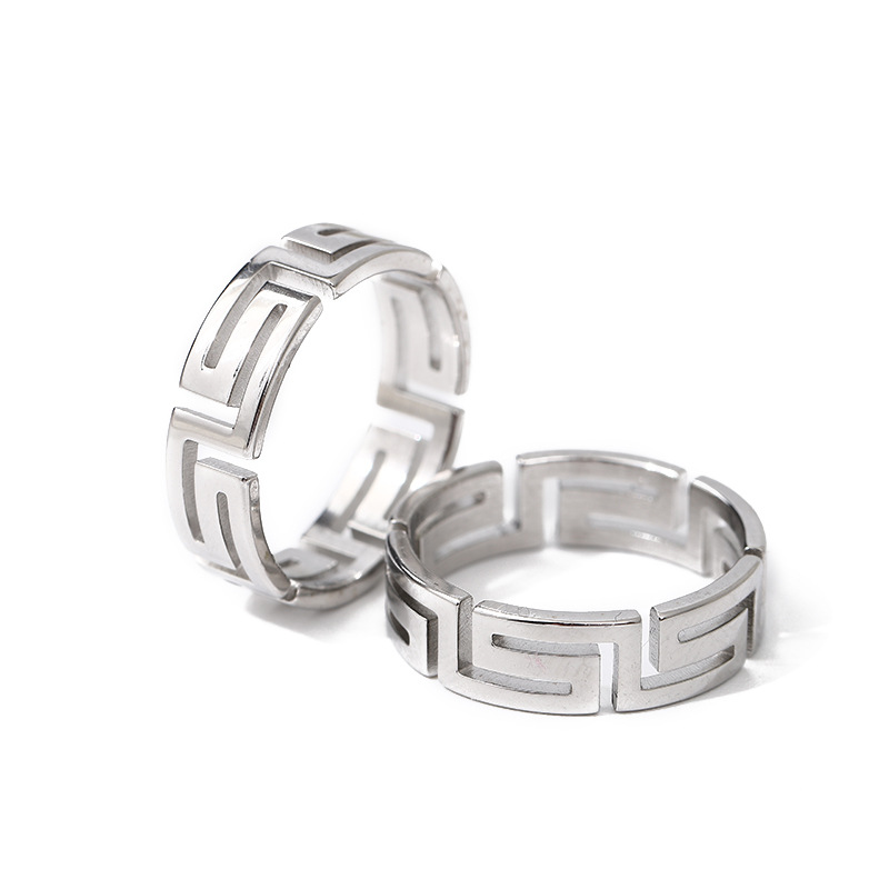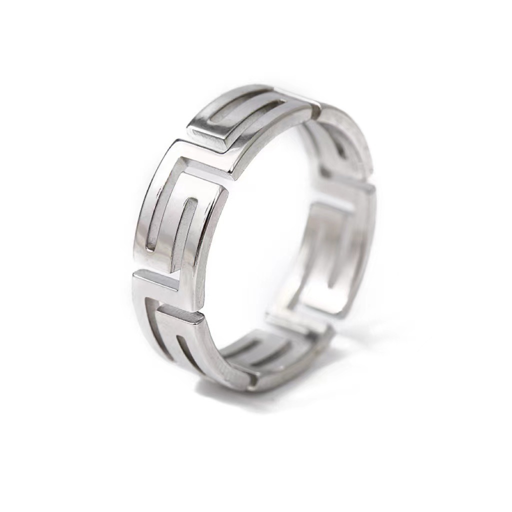 Tide Cool Laser Cutting Titanium Steel Great Wall Pattern Ring Light Luxury Niche Stainless Steel Hollow Palindromic Ring