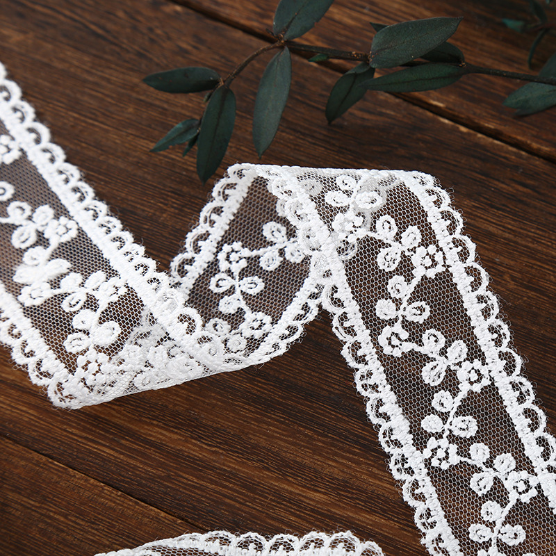 3.7cm Transparent Mesh Milk Silk Bilateral Embroidery Lace Garment Accessories Children's Hair Accessories Bow