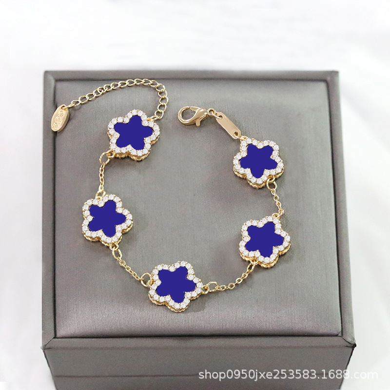 Color: Same style zircon double-sided four-leaf clover bracelet blue and green