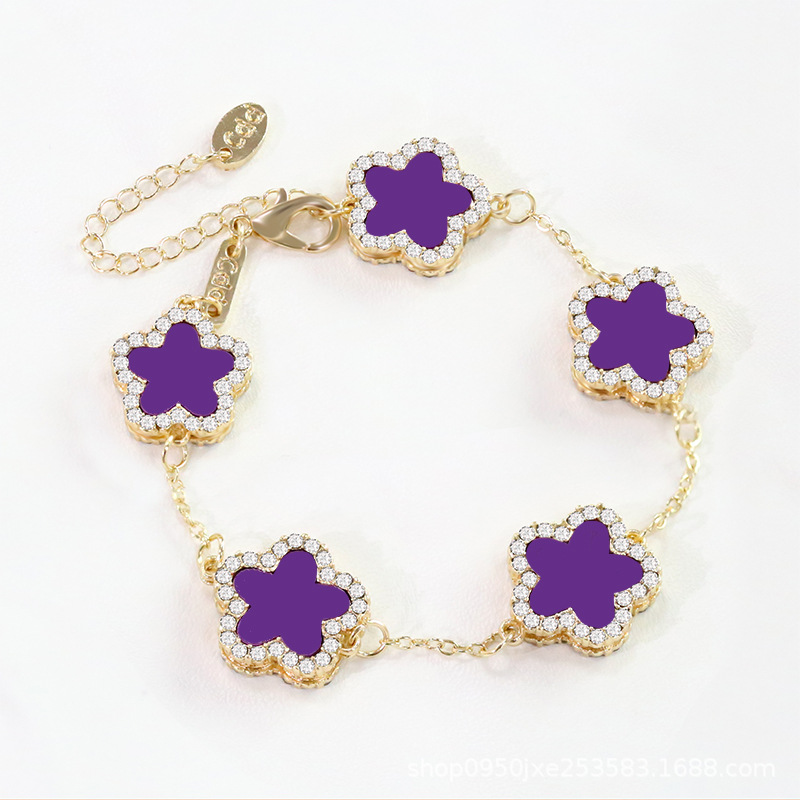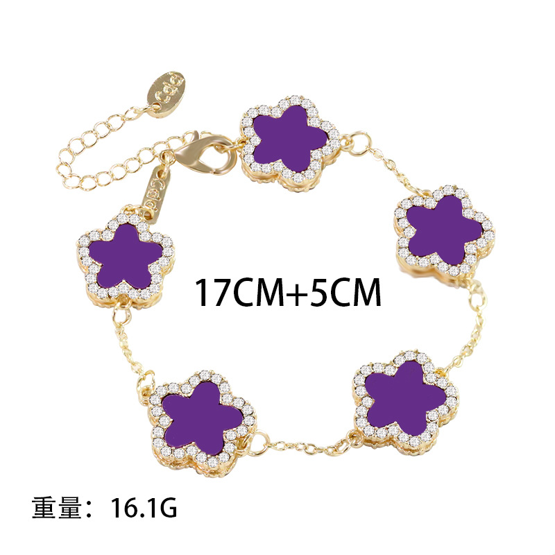 Color: Same style zircon double-sided four-leaf clover bracelet purple