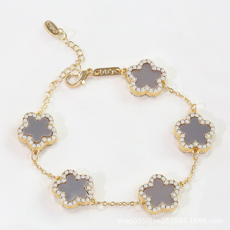 Color: Same style zircon double-sided four-leaf clover bracelet Gray