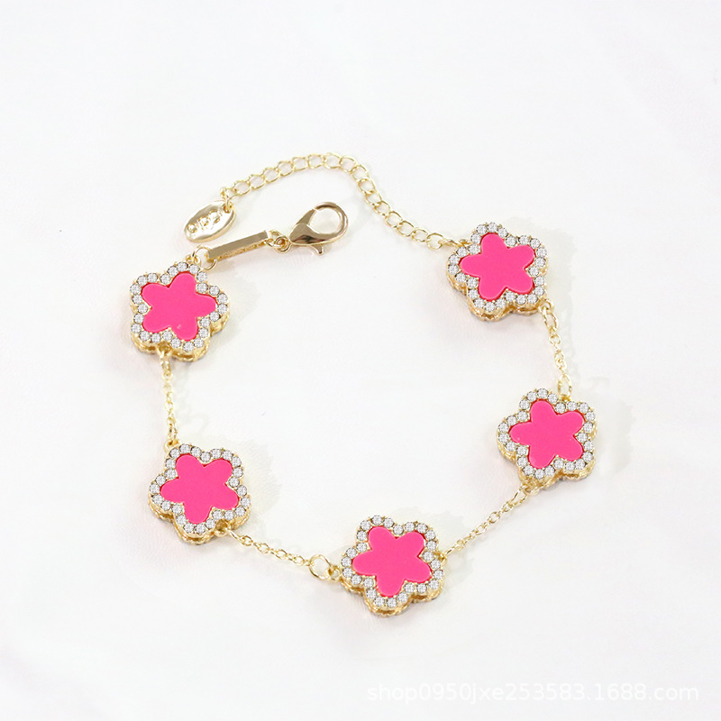 Color: The same style zircon double-sided four-leaf clover Bracelet Pink