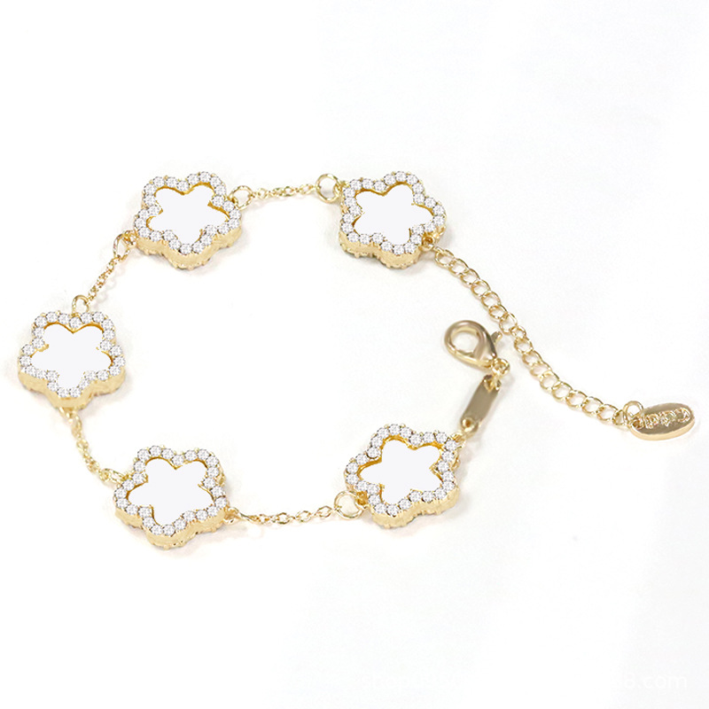 Color: Same style zircon double-sided four-leaf clover bracelet White