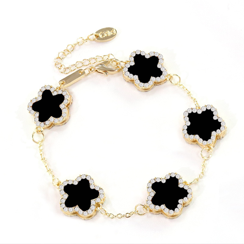 Color: Same style zircon double-sided four-leaf clover bracelet Black