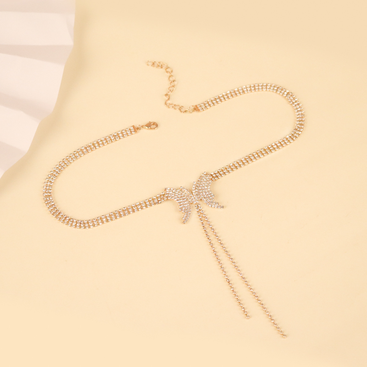 Europe and the United States cross-border sexy butterfly rhinestone necklace tassel neck chain clavicle chain fashion banquet ins female fashion necklace