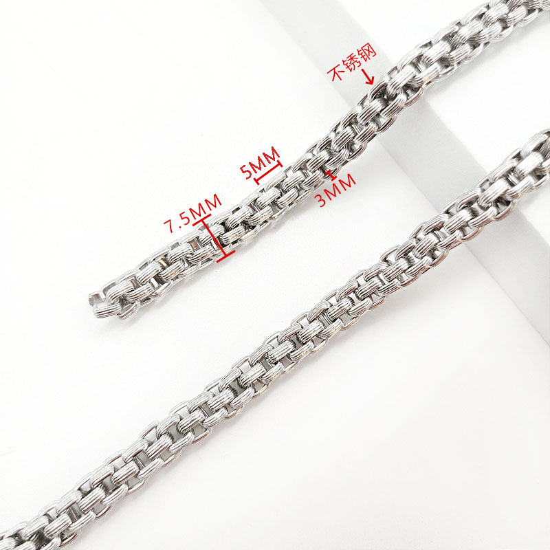 Color: B75/7.5x3mm stainless steel horizontal pattern twist lantern chain 1.0m