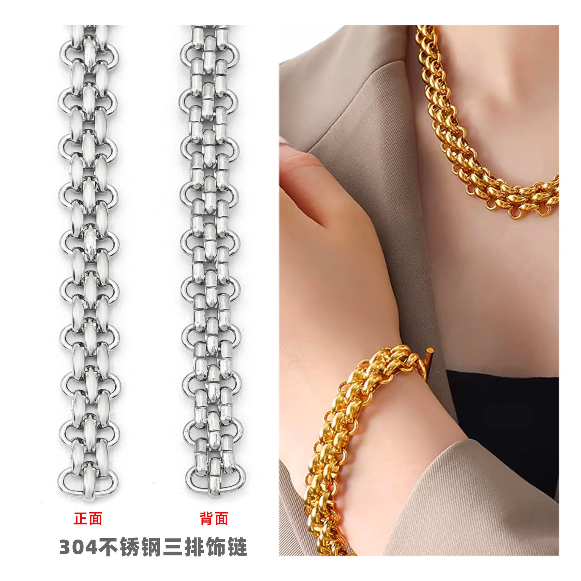 Color: 10mm silver-304 stainless steel three-row decorative chain