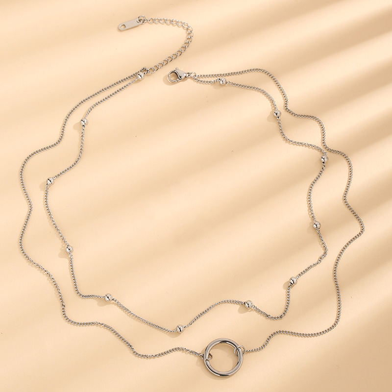Steel ball ring titanium steel double-layer necklace female versatile niche stainless steel jewelry wholesale simple personality clavicle chain
