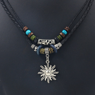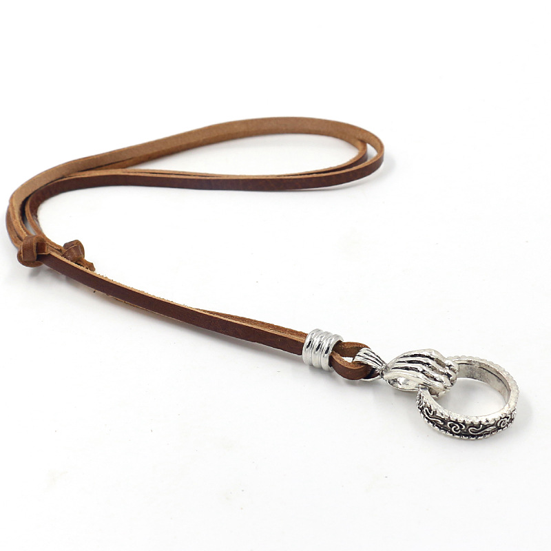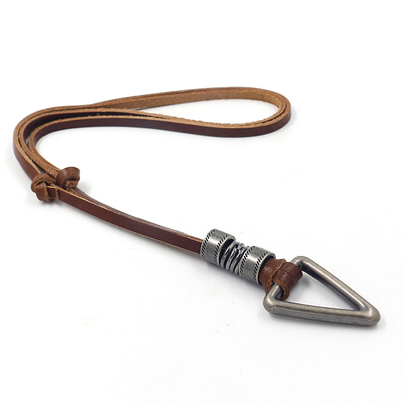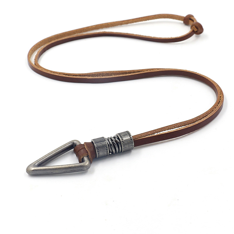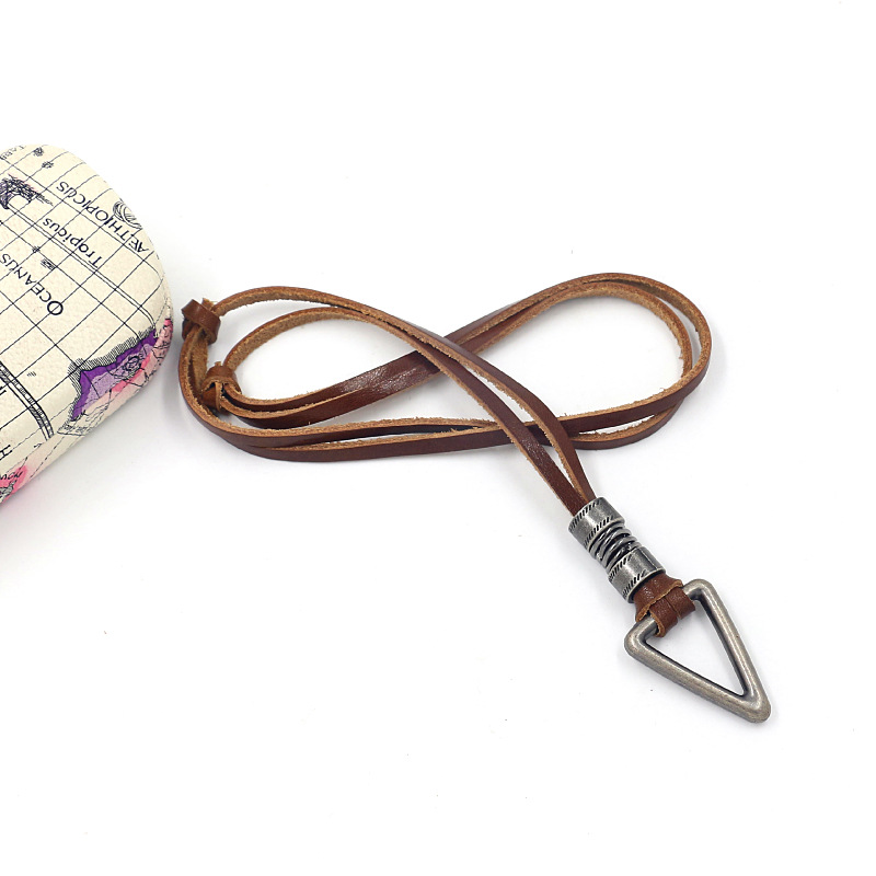 名称:复古合金几何牛皮项链 材料:牛皮,合金 工艺:纯手工 颜色:如图 尺寸:约88-90CM (可调尺寸),皮宽0.35cm 吊坠尺寸:3.5cm 克重:约25克 包装: 1条/OPP袋,12条装一个大袋 -------------------------------------------------------------------------------------------------------------- 因不同的计量方法,尺寸和克重会有细微差异,此种状况并非商品质量问题。