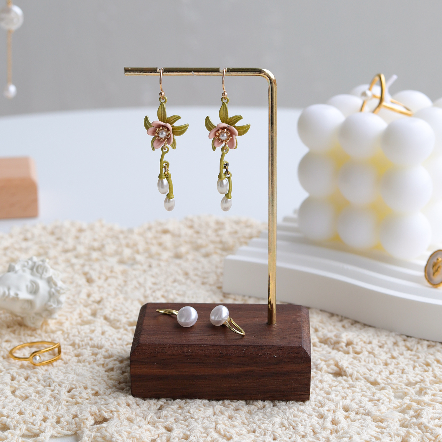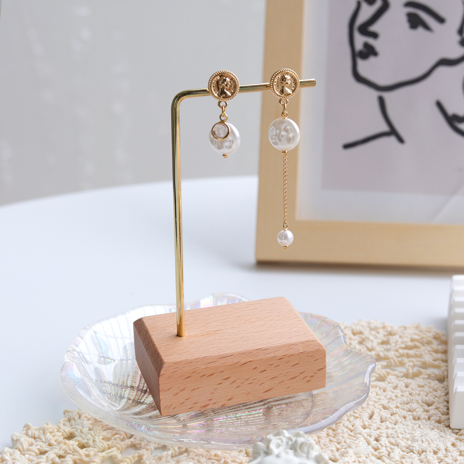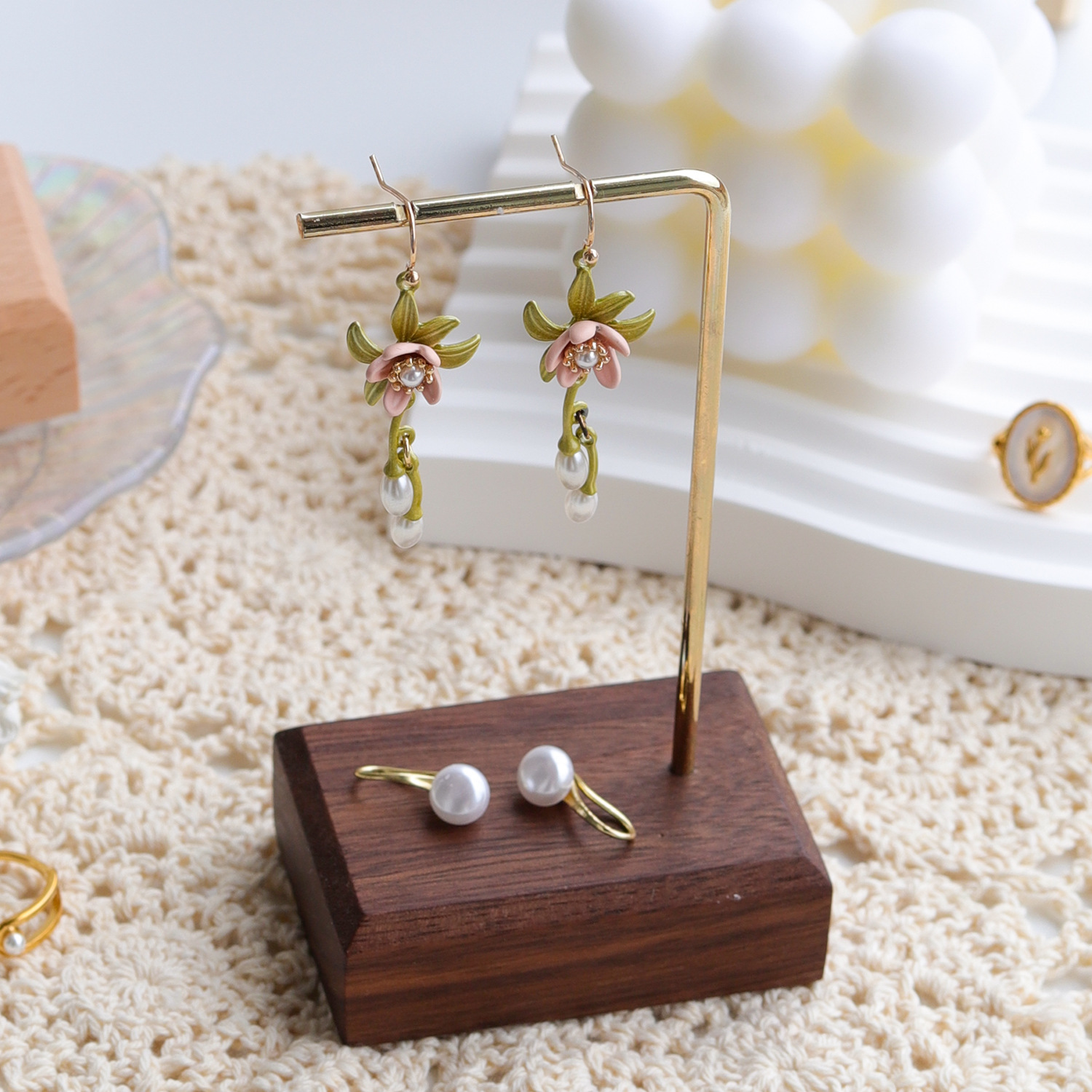 Walnut Beech Earrings Display Rack Jewelry Ear Rack Jewelry Display and Hanging Shelf Jewelry Photography Props Ornaments