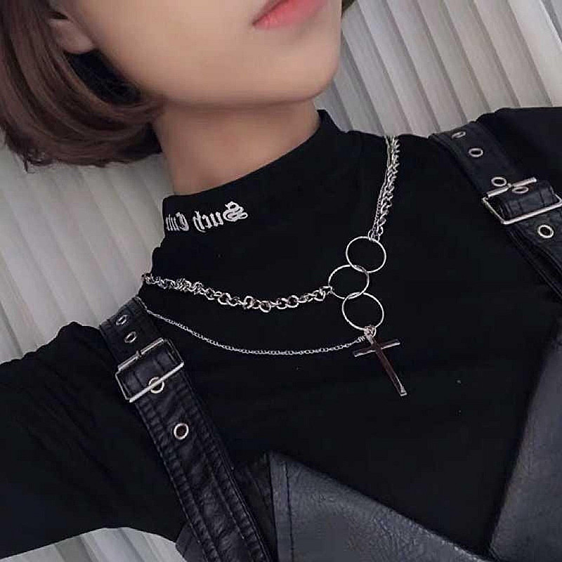 European and American Cross-border Geometric Cyber Gothic Unisex Necklace Personality Punk Cross Pendant Necklace