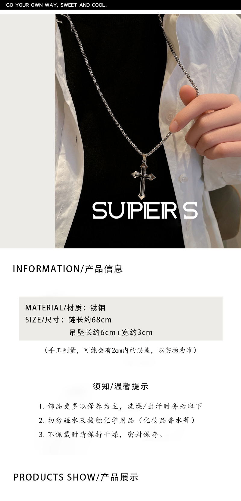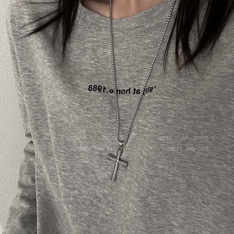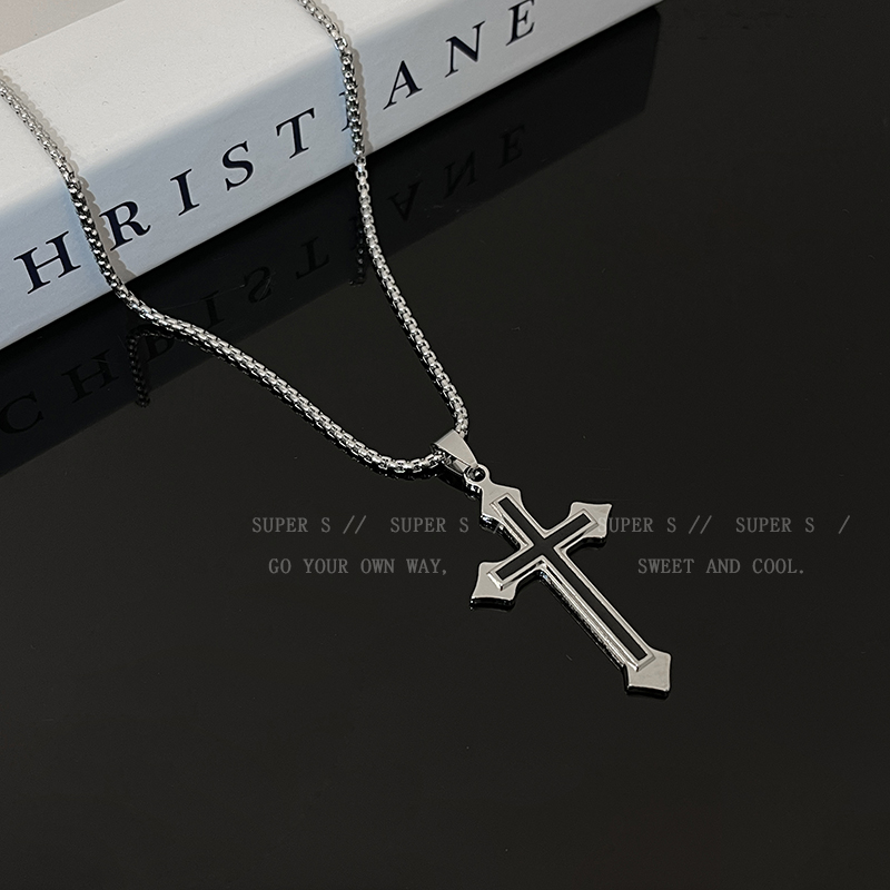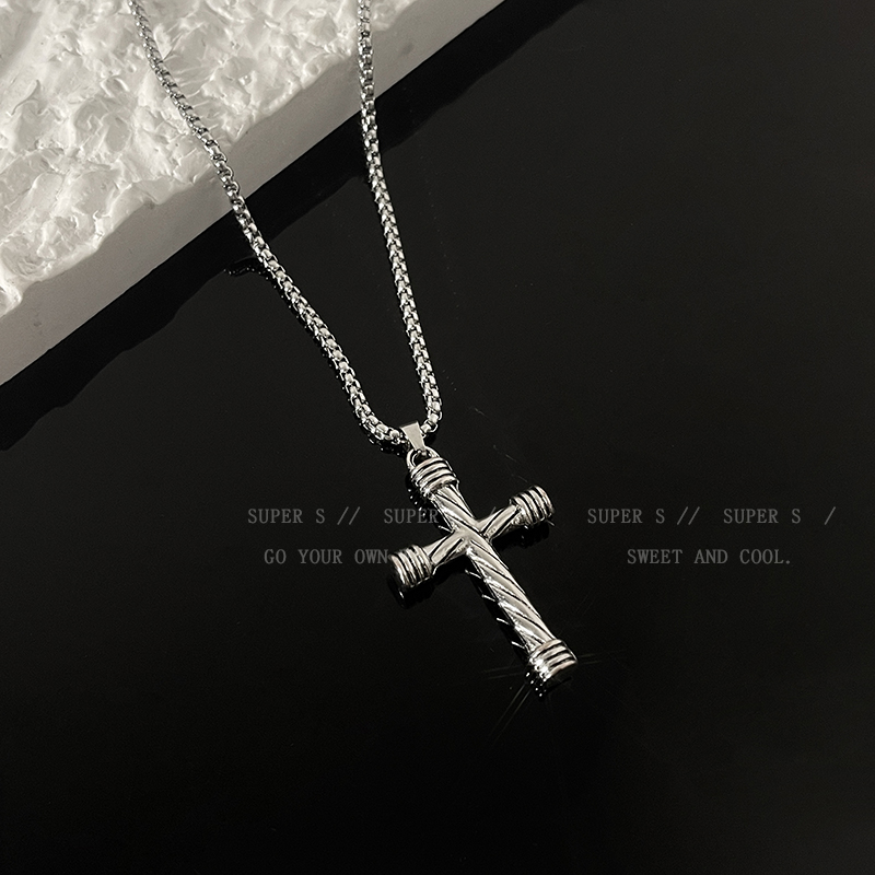 Color: Cylindrical Cross Necklace-Titanium Steel