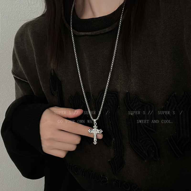 Color: Cross necklace with drill-titanium steel