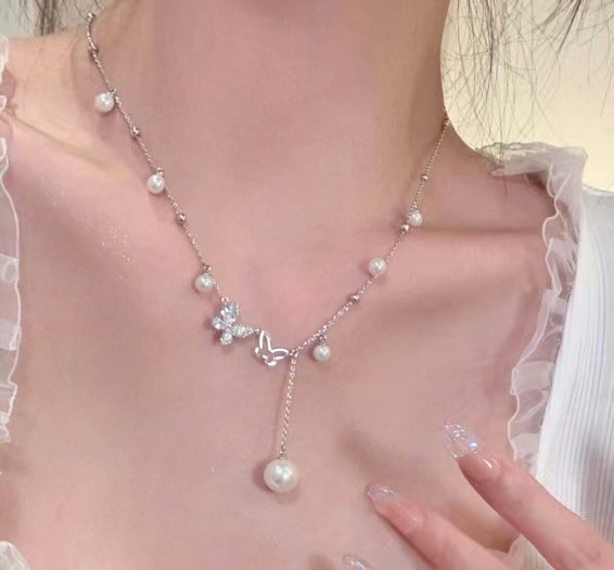 Color: Korean style tassel butterfly clavicle chain-x1541 silver