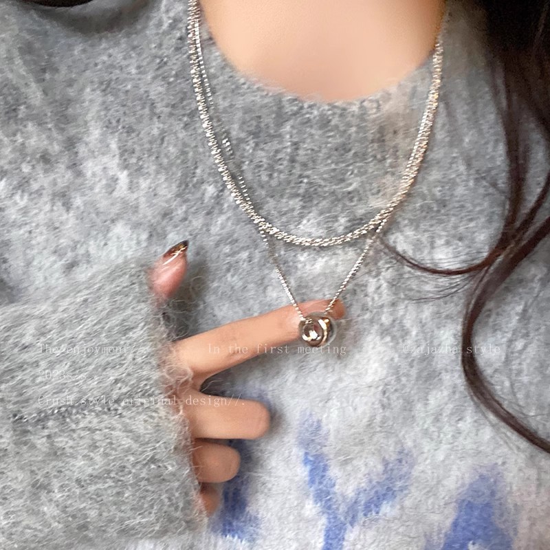 Color: Double-layer sweater chain simple ring necklace-x1641 silver