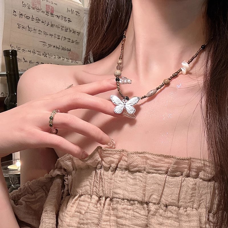 Color: Macaron contrast color butterfly necklace-x1834 pink
