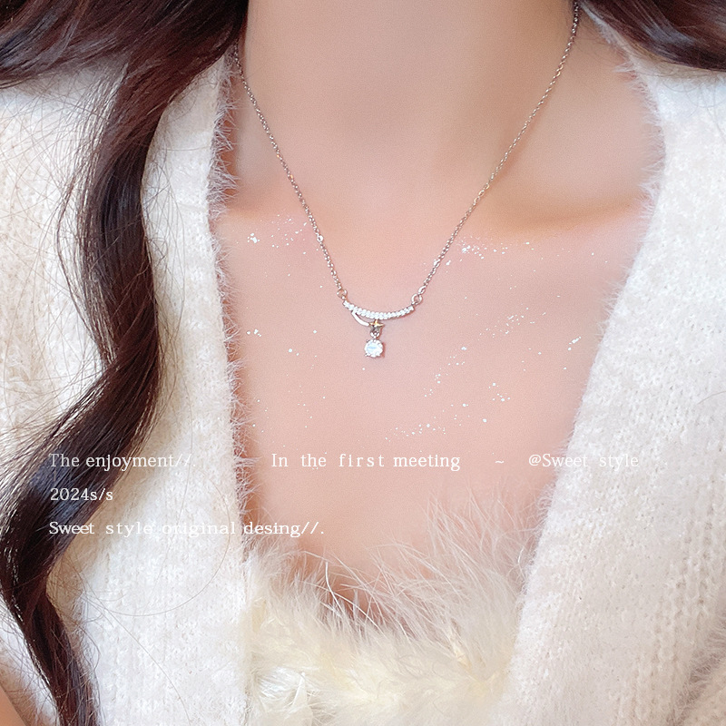 Color: Korean style sparkling zircon titanium steel necklace-x1675 silver