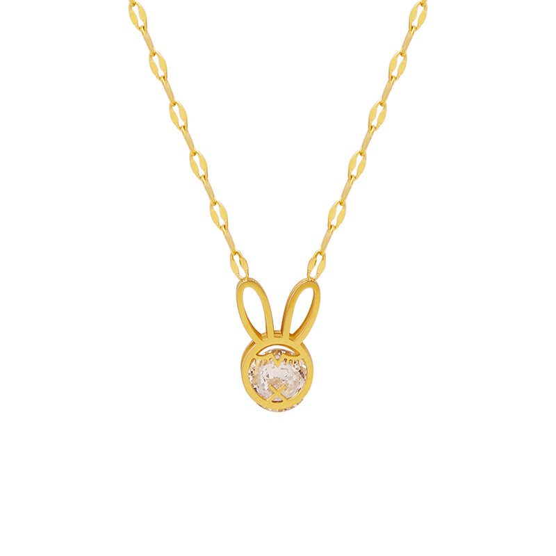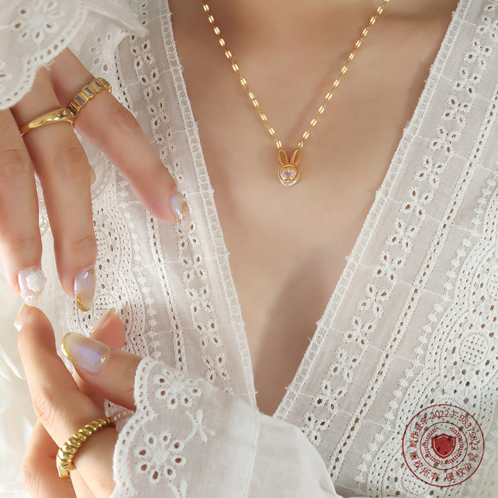 Cute bunny inlaid zircon shining pendant necklace titanium steel gold plated fish mouth chain original design zodiac jewelry