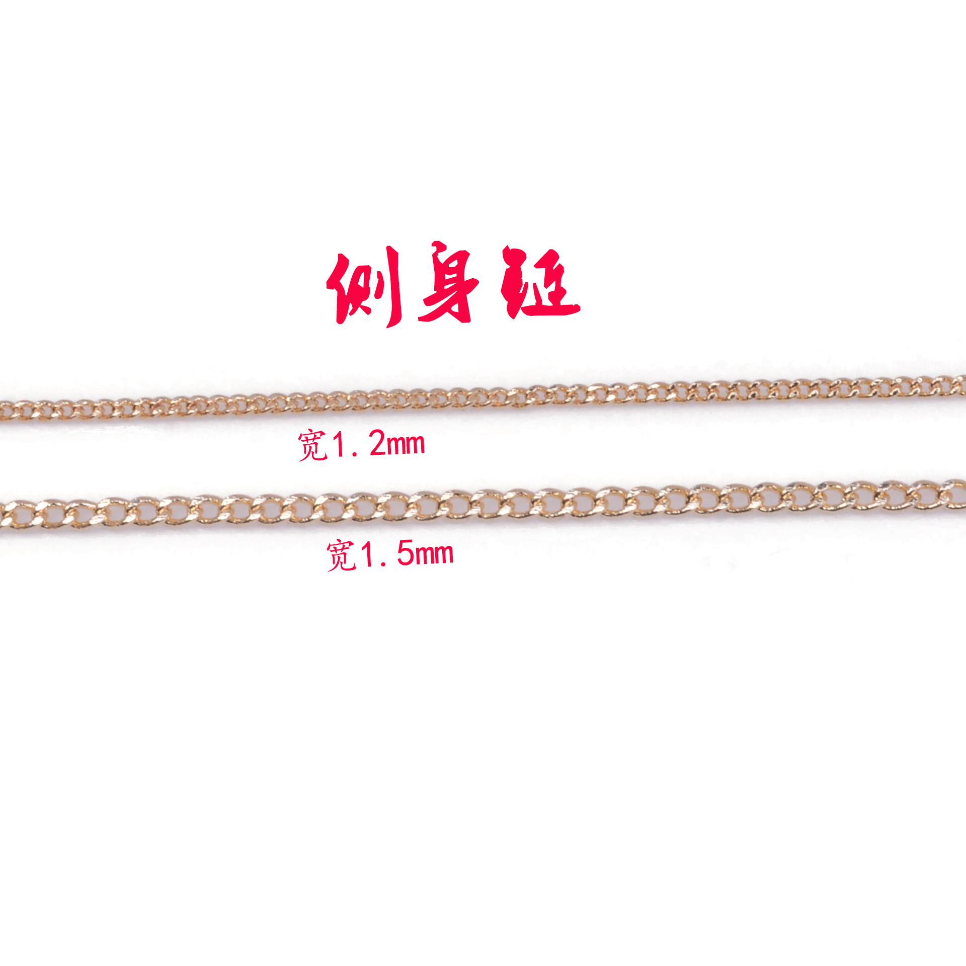 14K package gold color flat single buckle chain wholesale brass side chain universal loose chain diy jewelry SF flat chain material