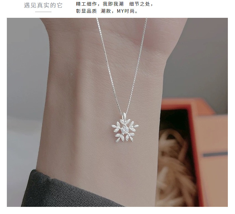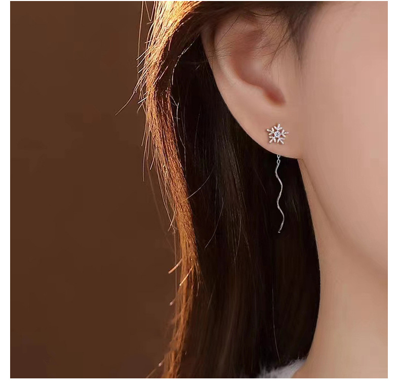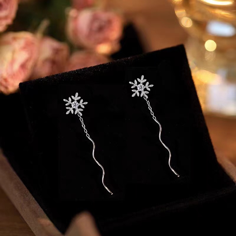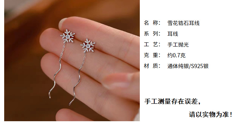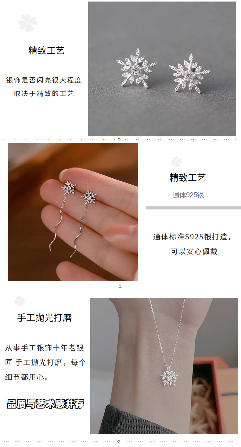 S925 Sterling Silver Snowflake Jewelry suit Korean Style Snowflake Earrings Snowflake Wave Ear Line Light Luxury Snowflake Necklace Women