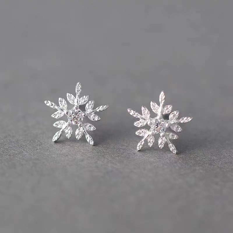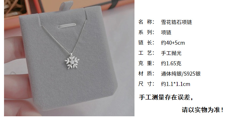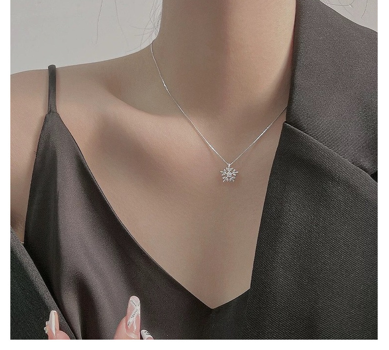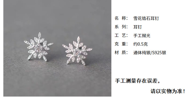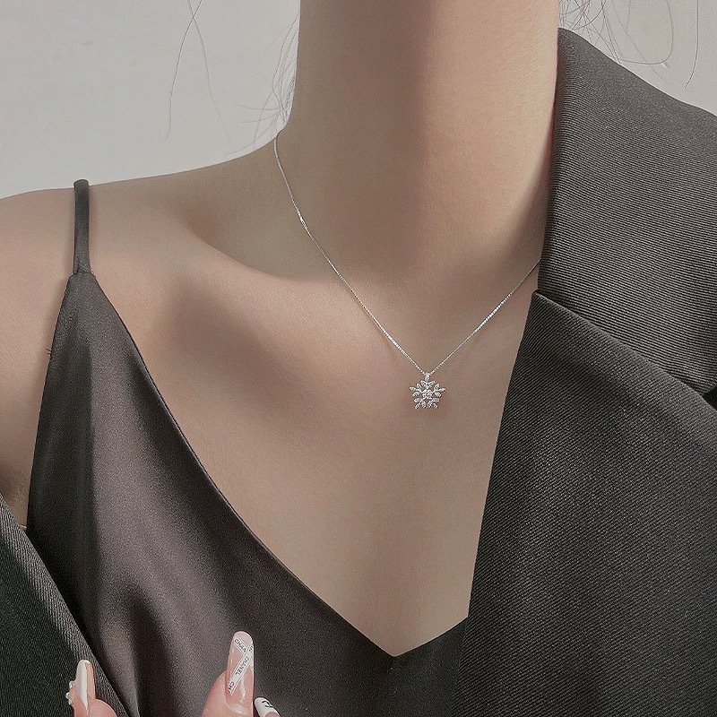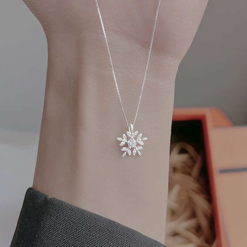S925 Sterling Silver Snowflake Jewelry suit Korean Style Snowflake Earrings Snowflake Wave Ear Line Light Luxury Snowflake Necklace Women