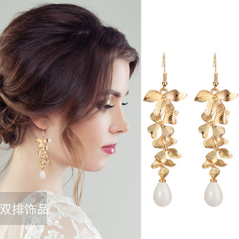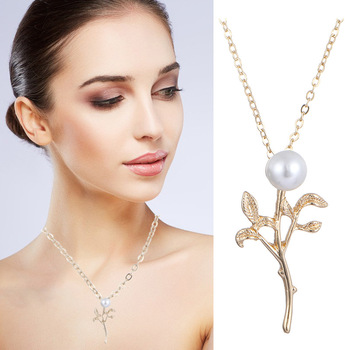 咔饰彤欧美热卖天然珍珠树叶长项链