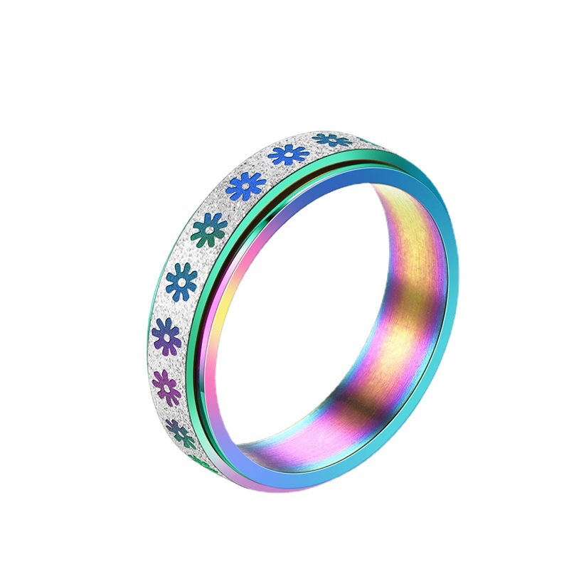 Xinghe cross-border new titanium steel sunflower ring can be rotated to decompress European and American fashion stainless steel couple ring