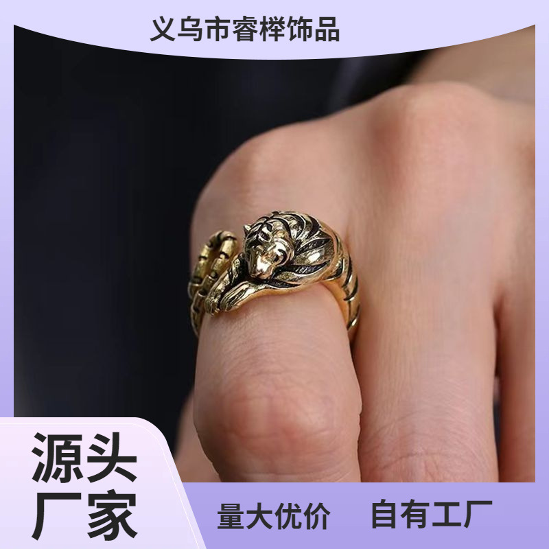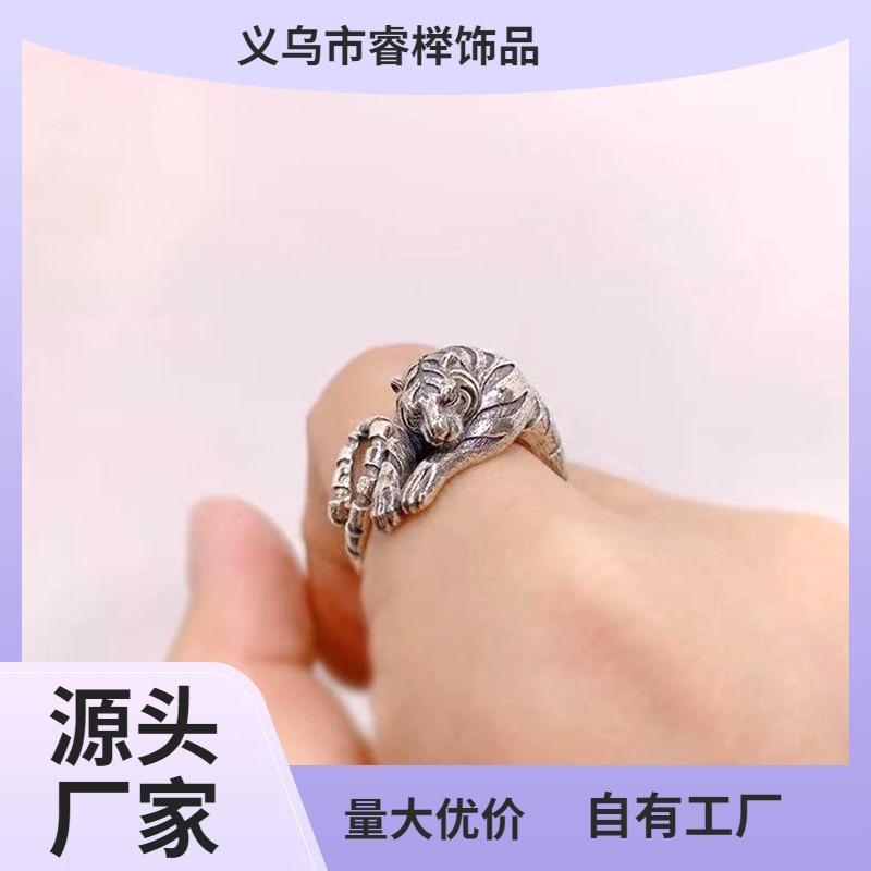 2022 New Birth Year Vintage Tiger Tiger Retro Tiger Open Ring Men's National Fashion Personalized Zodiac Tail Ring