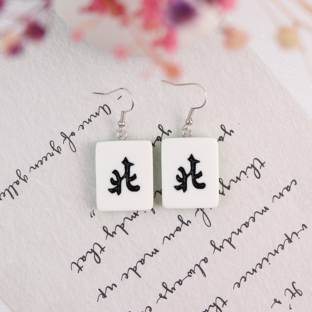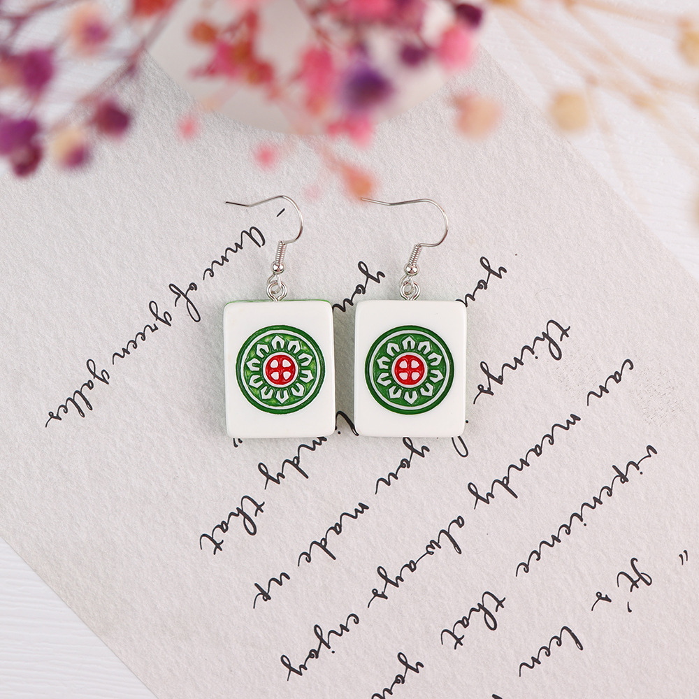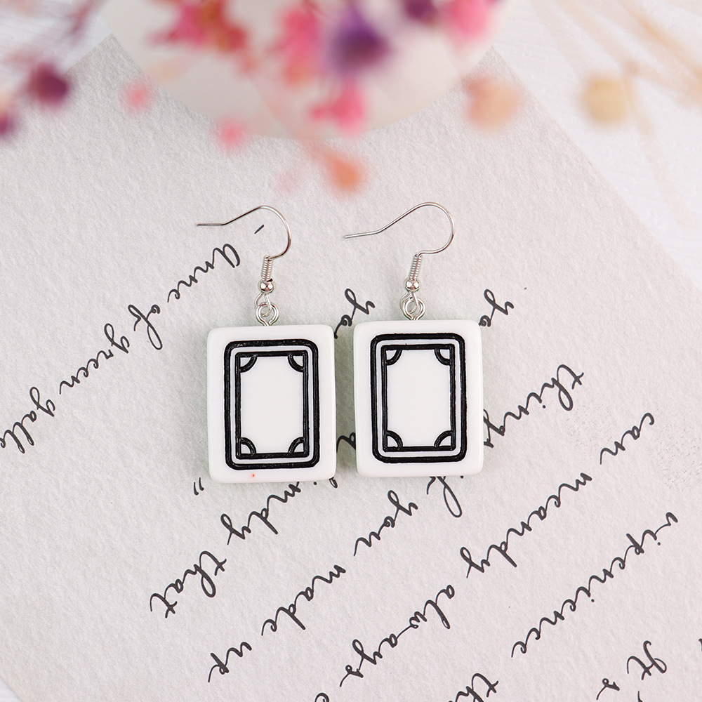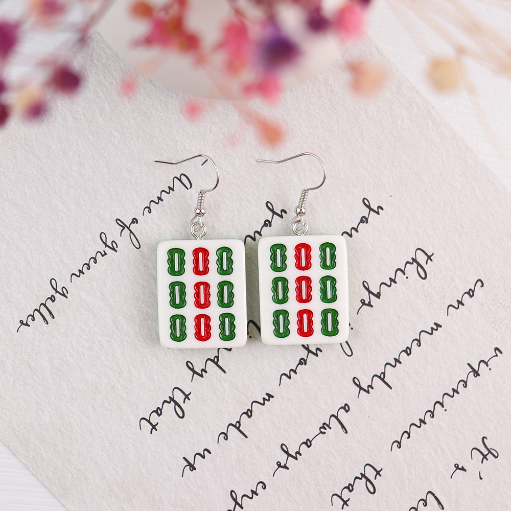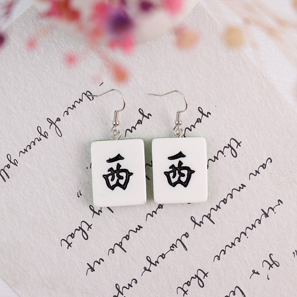 Korean Style Distinctive Creative Fun Earrings Hand-made Funny Simulation Mahjong Earrings ins Girl Soft Girl Cute Earrings