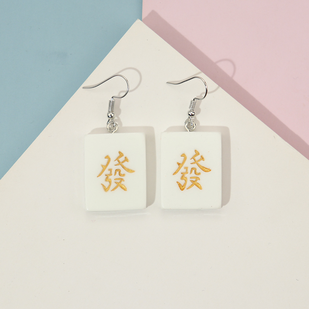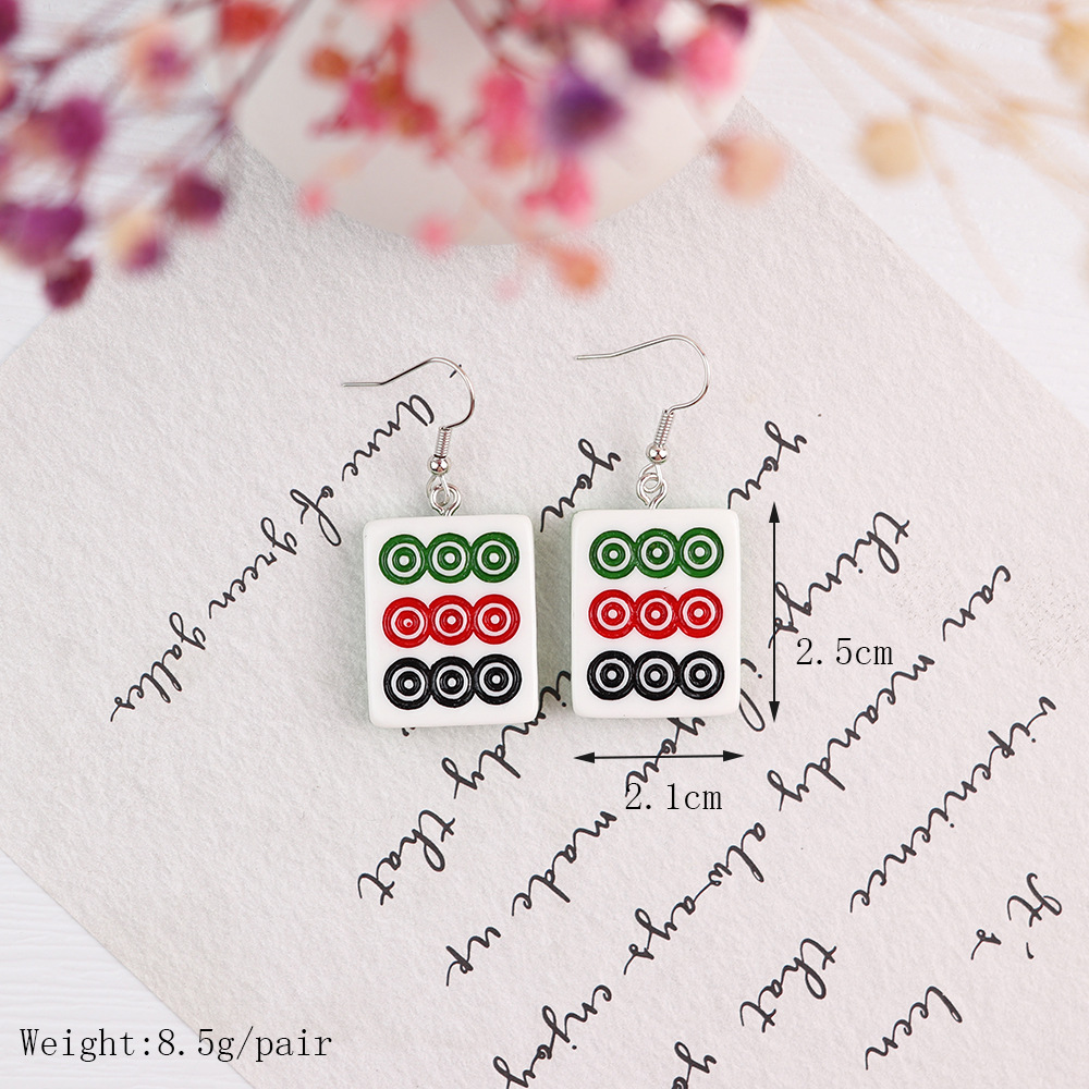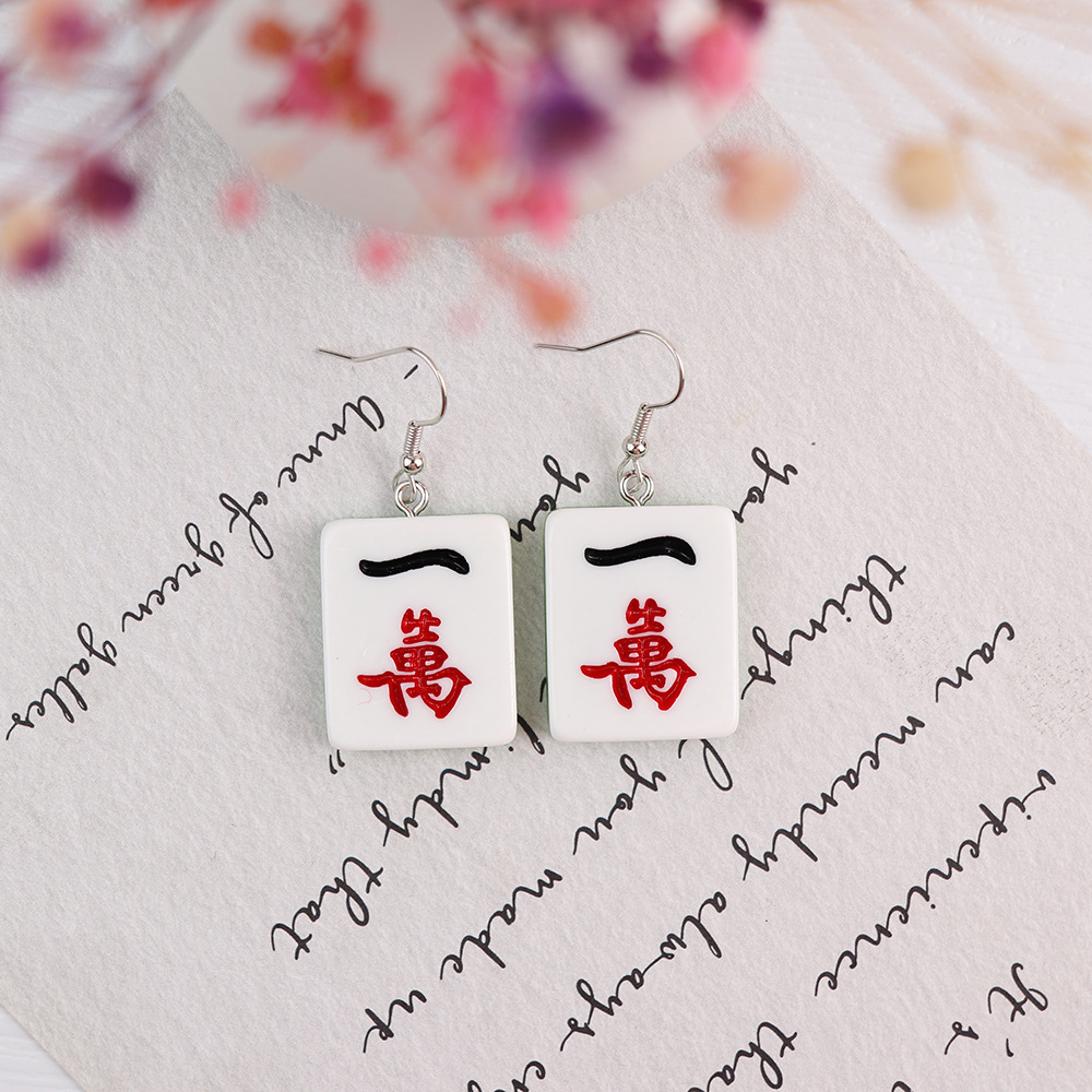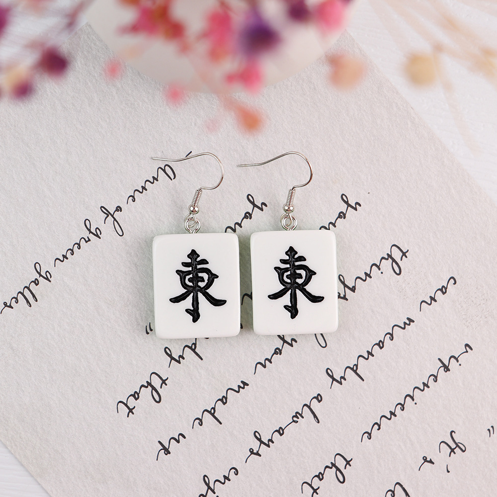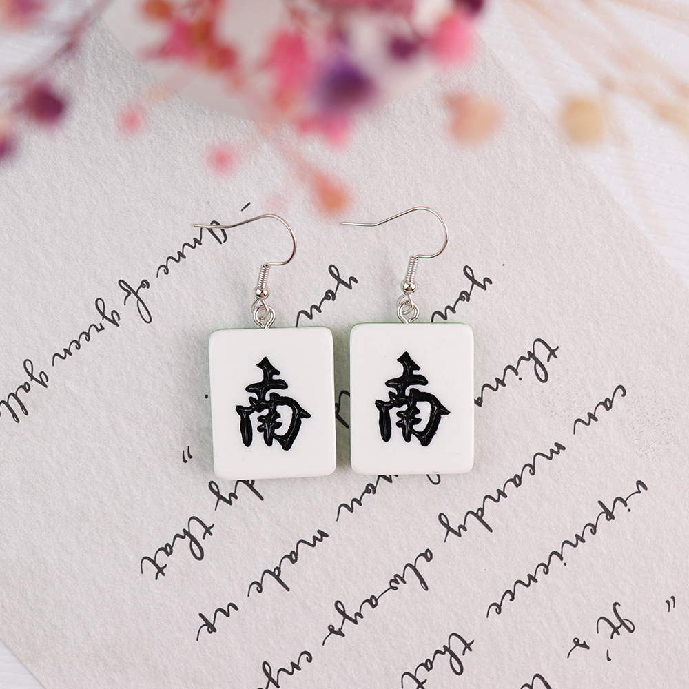 Korean Style Distinctive Creative Fun Earrings Hand-made Funny Simulation Mahjong Earrings ins Girl Soft Girl Cute Earrings