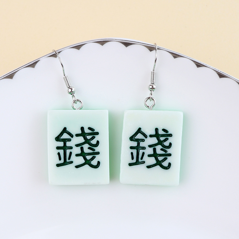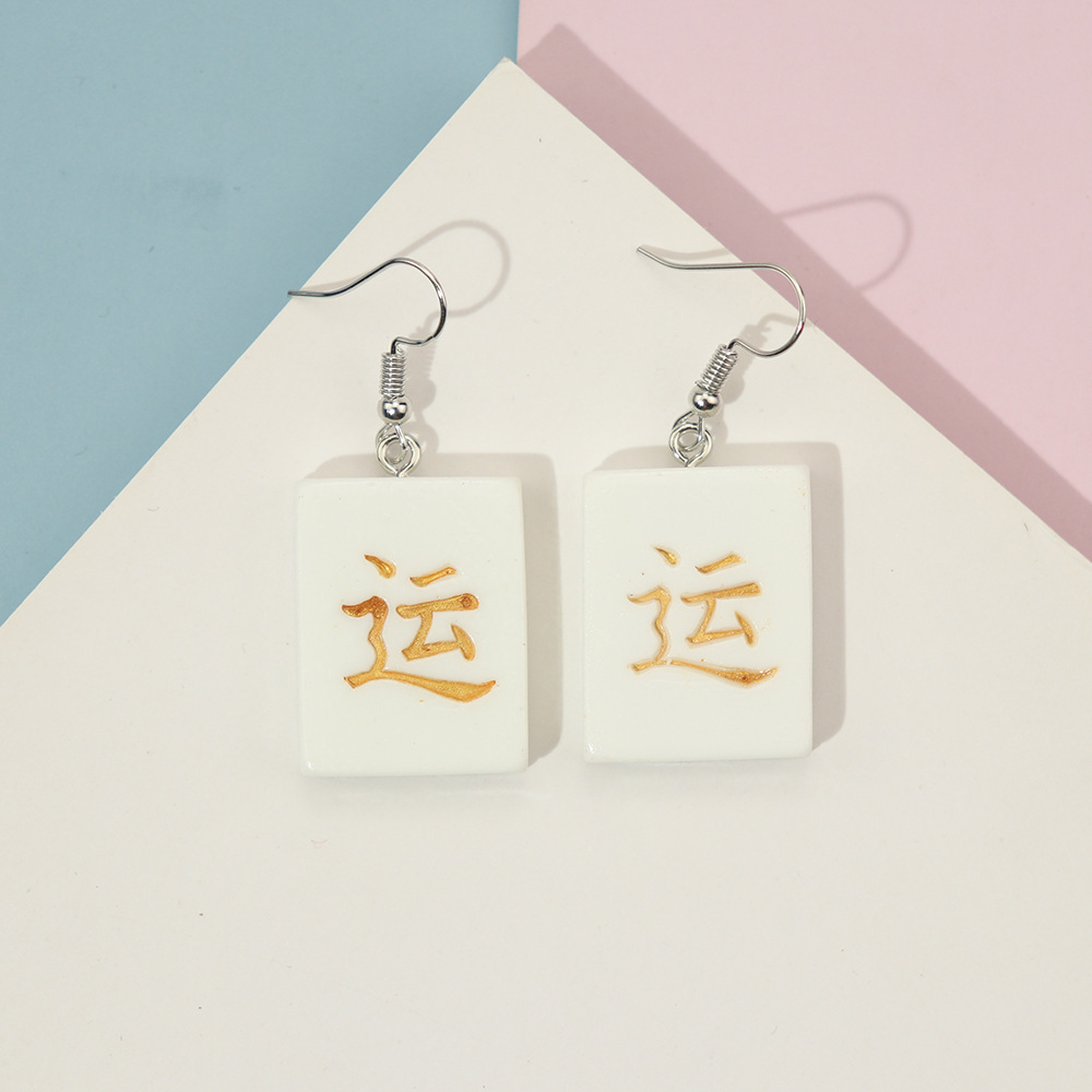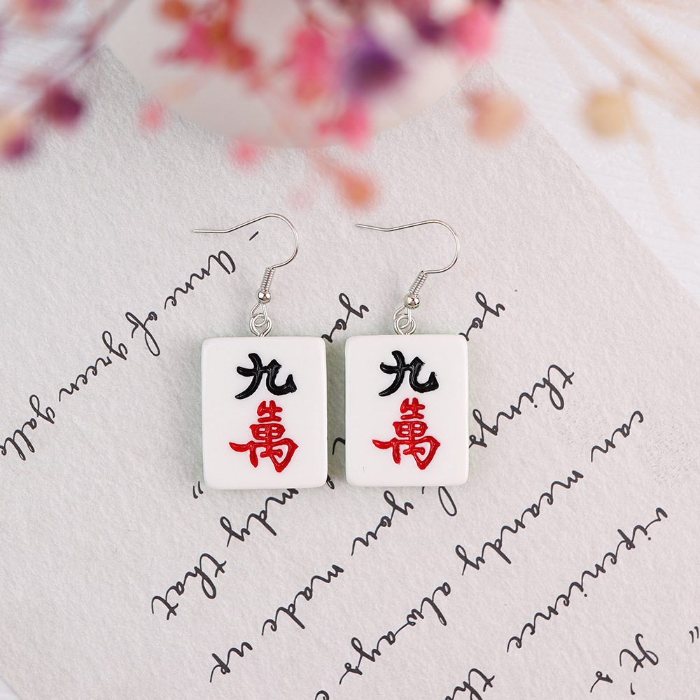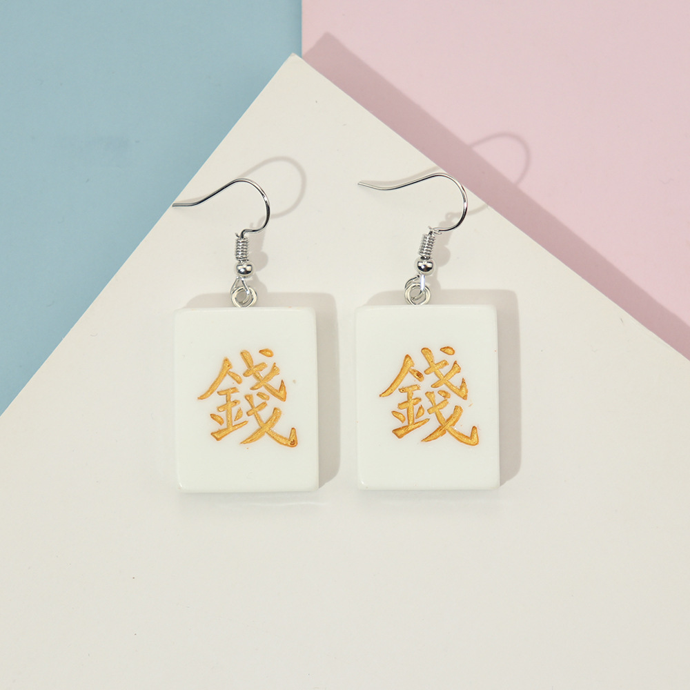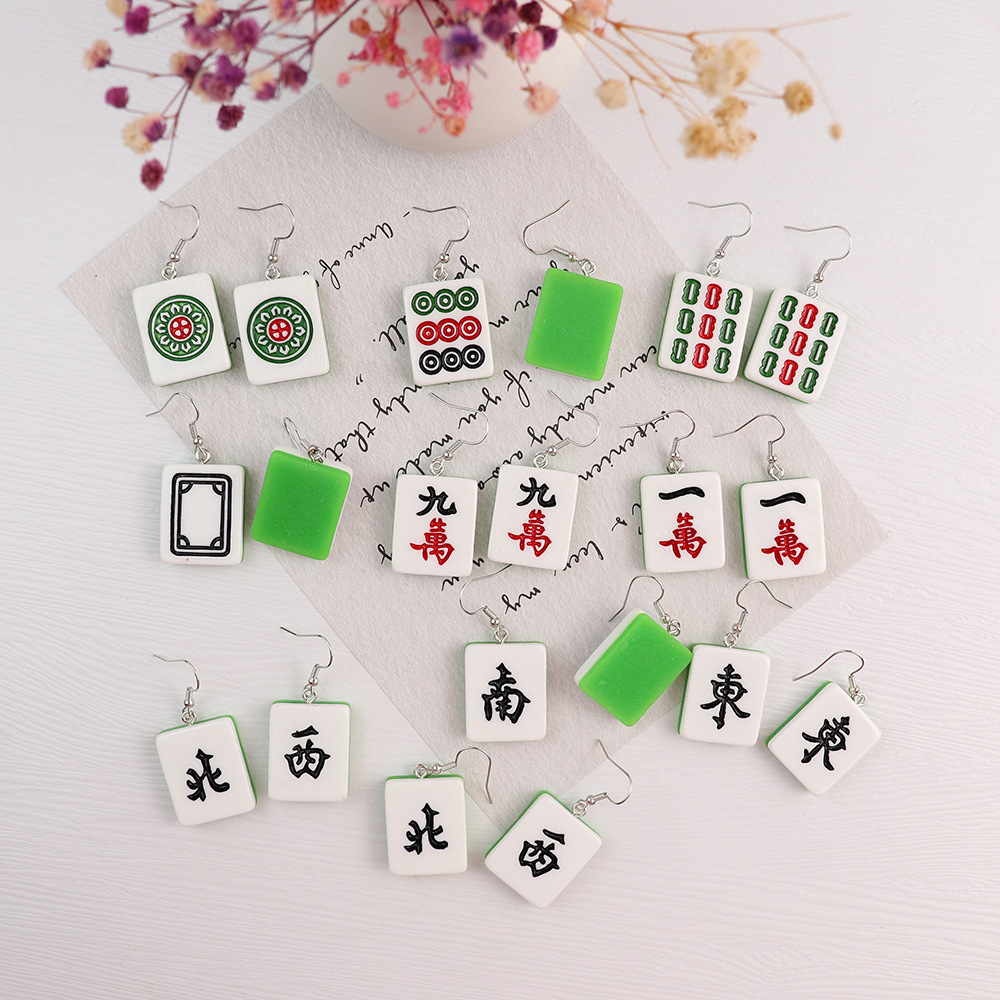 Korean Style Distinctive Creative Fun Earrings Hand-made Funny Simulation Mahjong Earrings ins Girl Soft Girl Cute Earrings