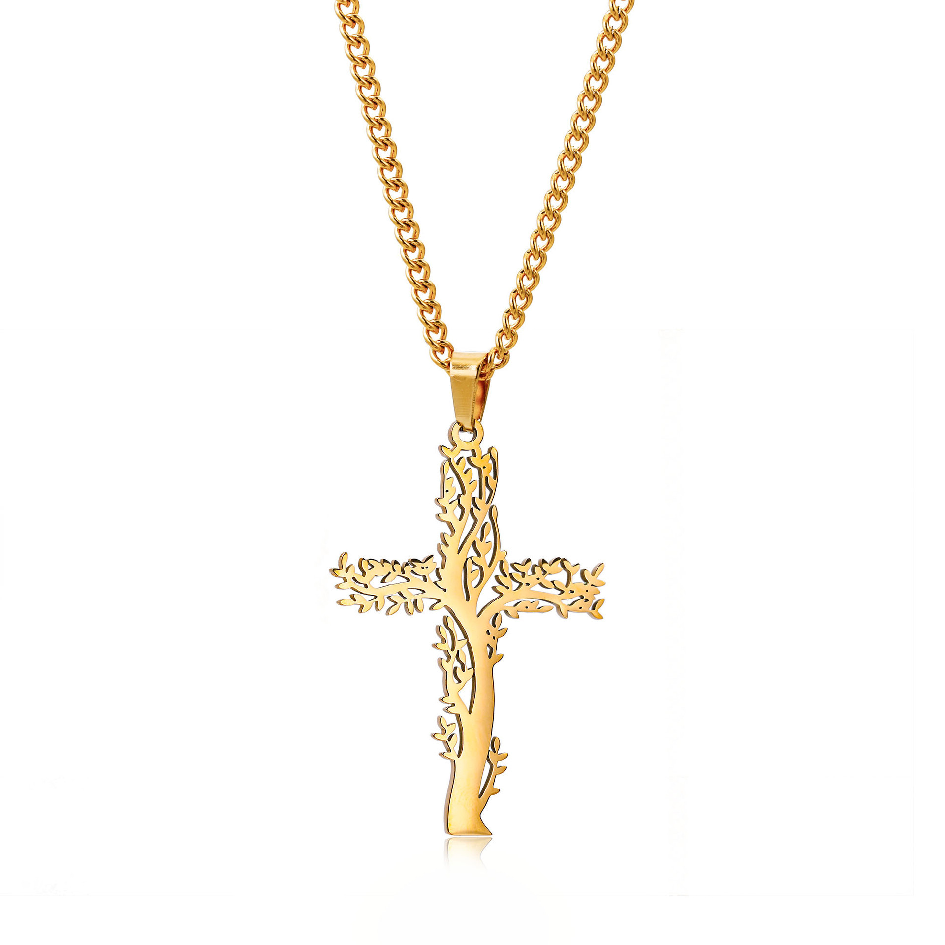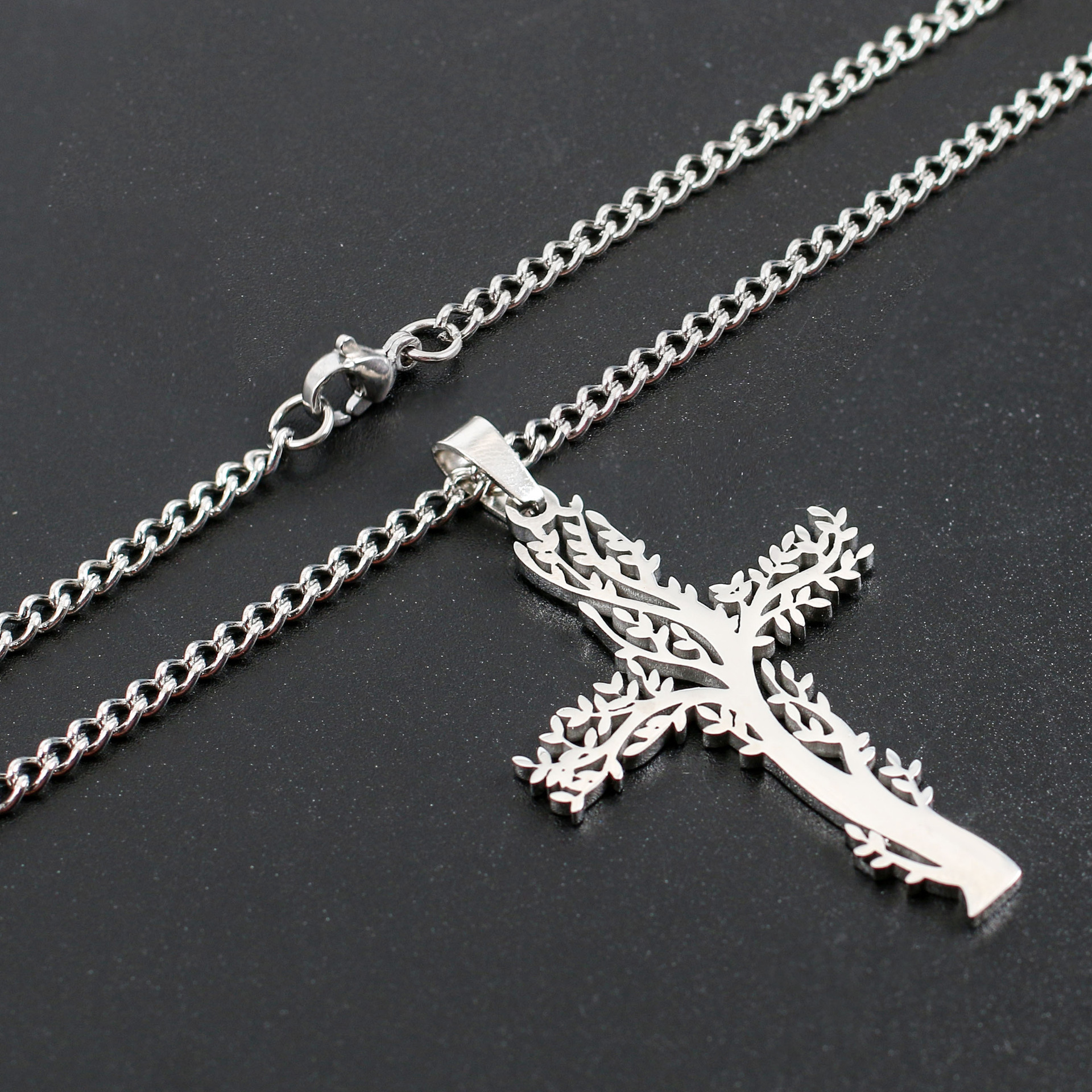 Cross-Border Amazon European and American Style Stainless Steel Tree of Life Cross Necklace Men and Women Personalized Wear Titanium Steel Pendant