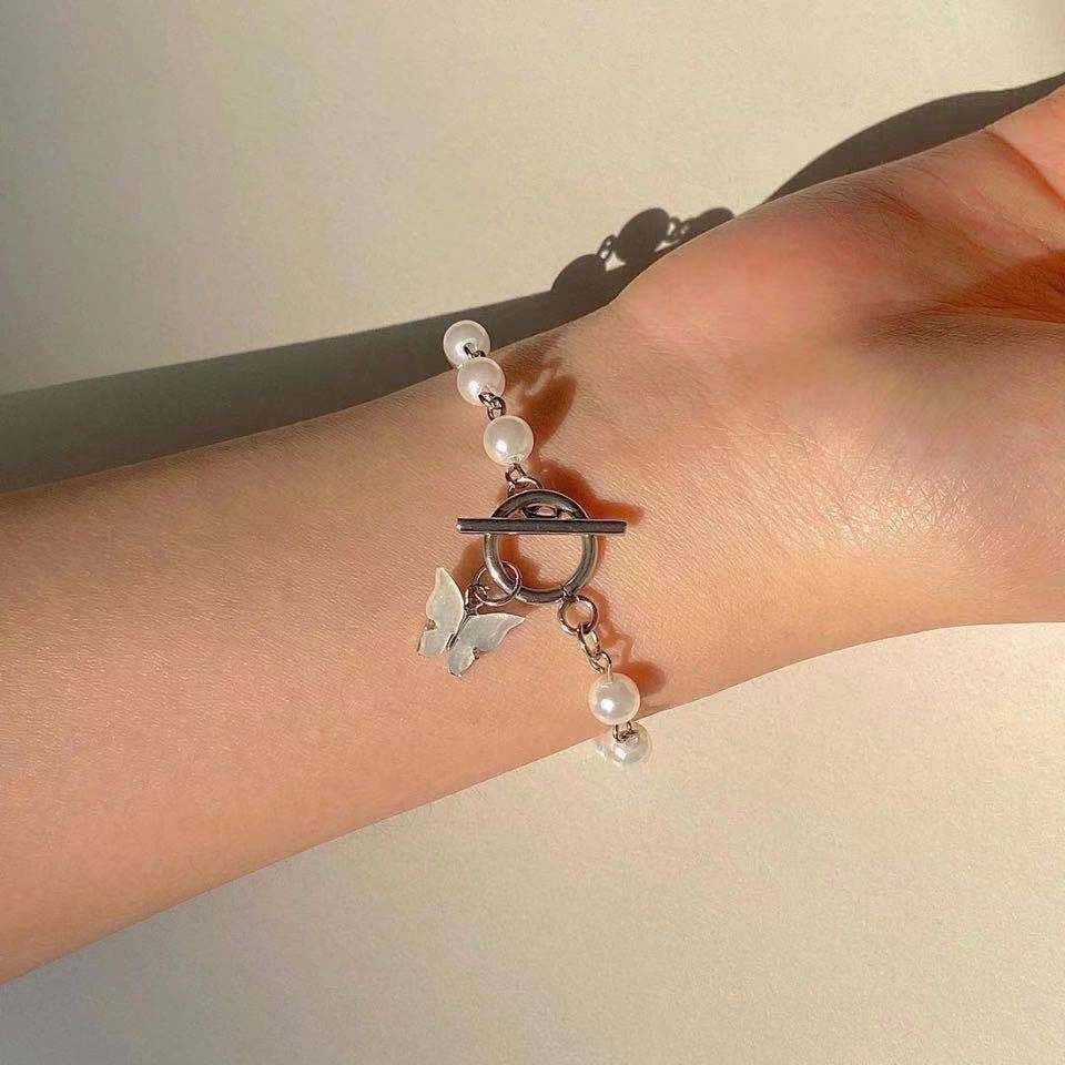 Women's Korean-style Super Fairy Butterfly Pearl Bracelet Instagram Style Color-free All-match Girlfriend Mori Girls' Bracelet Birthday Gift