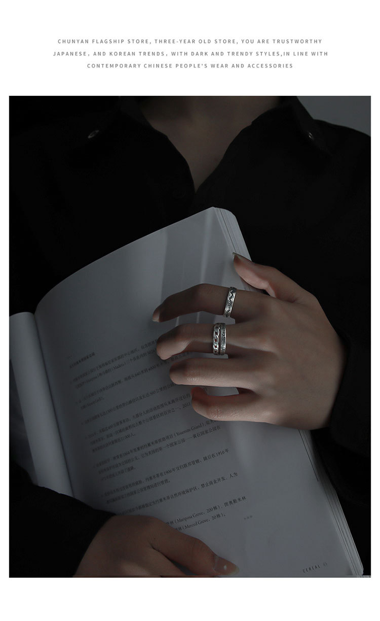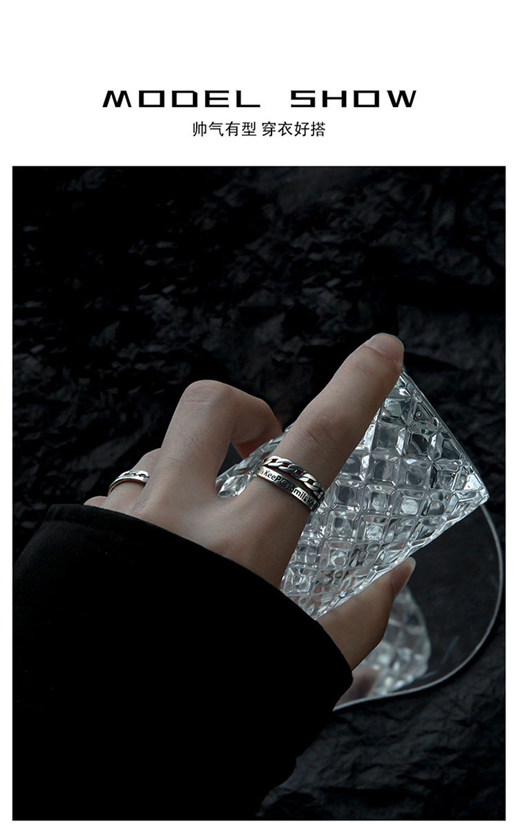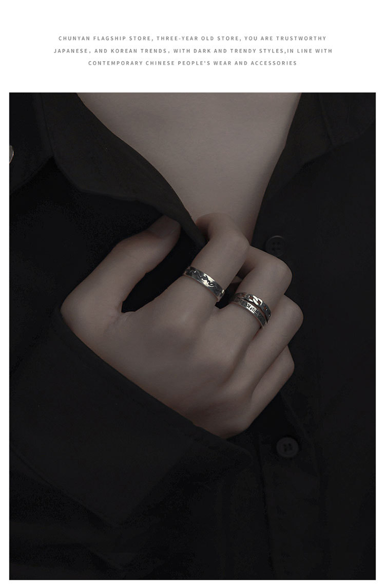 Vintage Men's Trendy Ring ins Single Ring Hip-Hop Student Index Finger Opening Adjustable Personalized Women's Ring for Boys