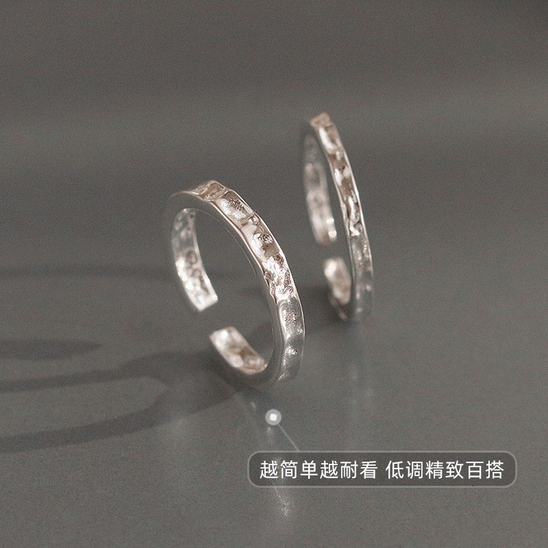Silver Shenzhen S925 sterling silver cold wind ring Women's simple plain ring index finger women's tide concave niche feeling adjustable ring