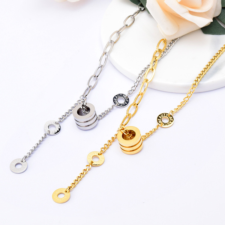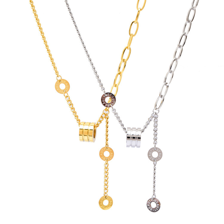 European and American Short Sweater T-Shirt Necklace Roman Round Waist Pendant O Word AB Mix and Match Chain Hip Hop Style Titanium Steel Jewelry