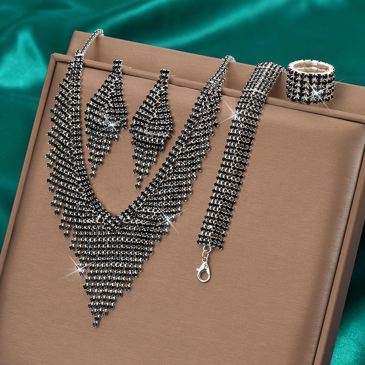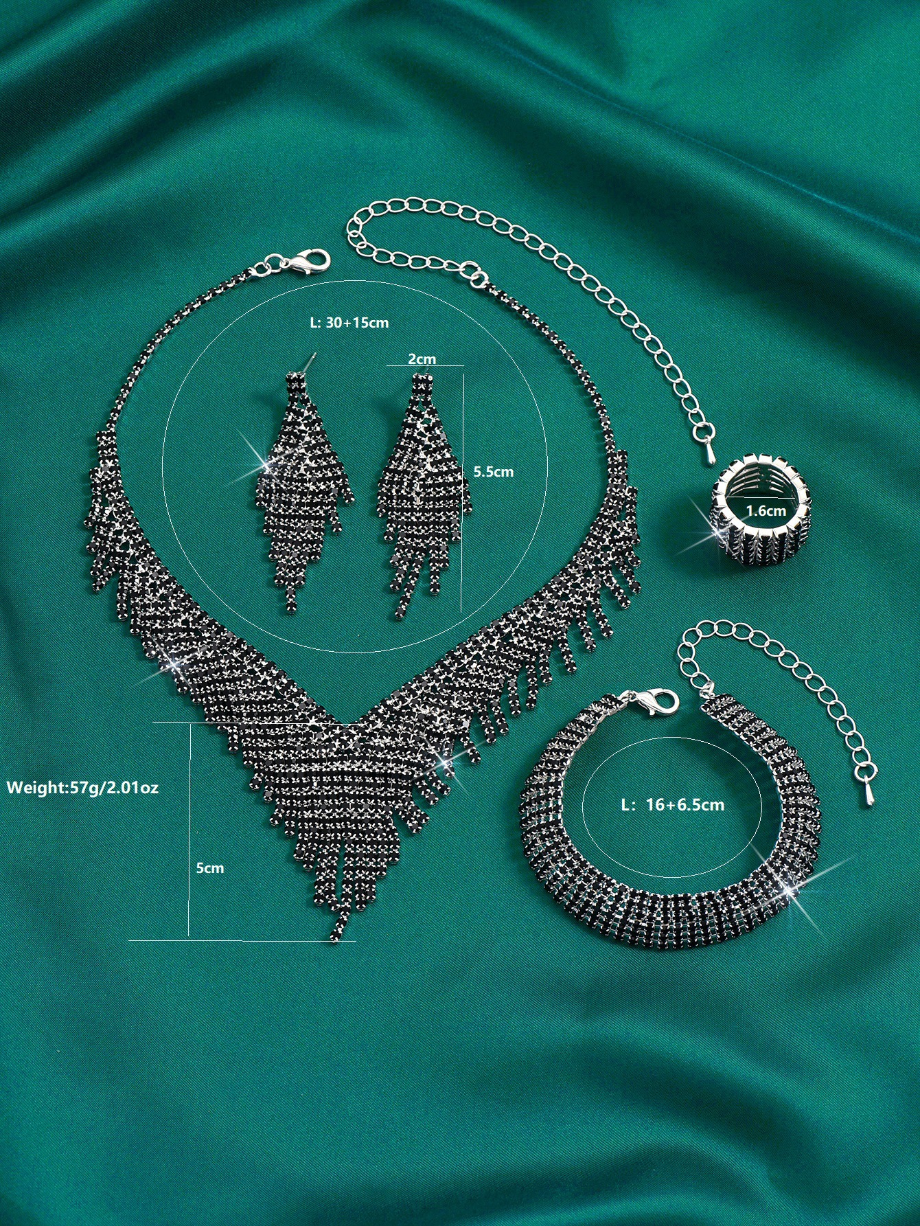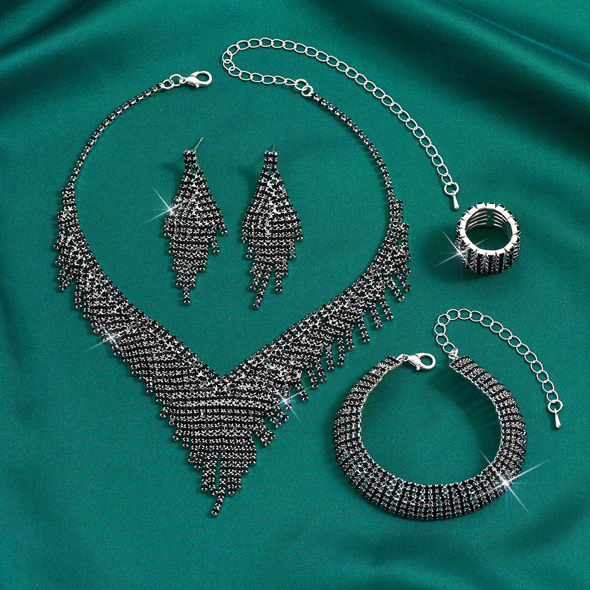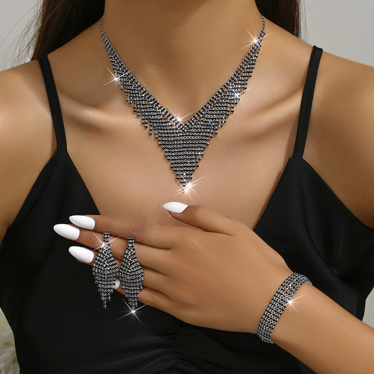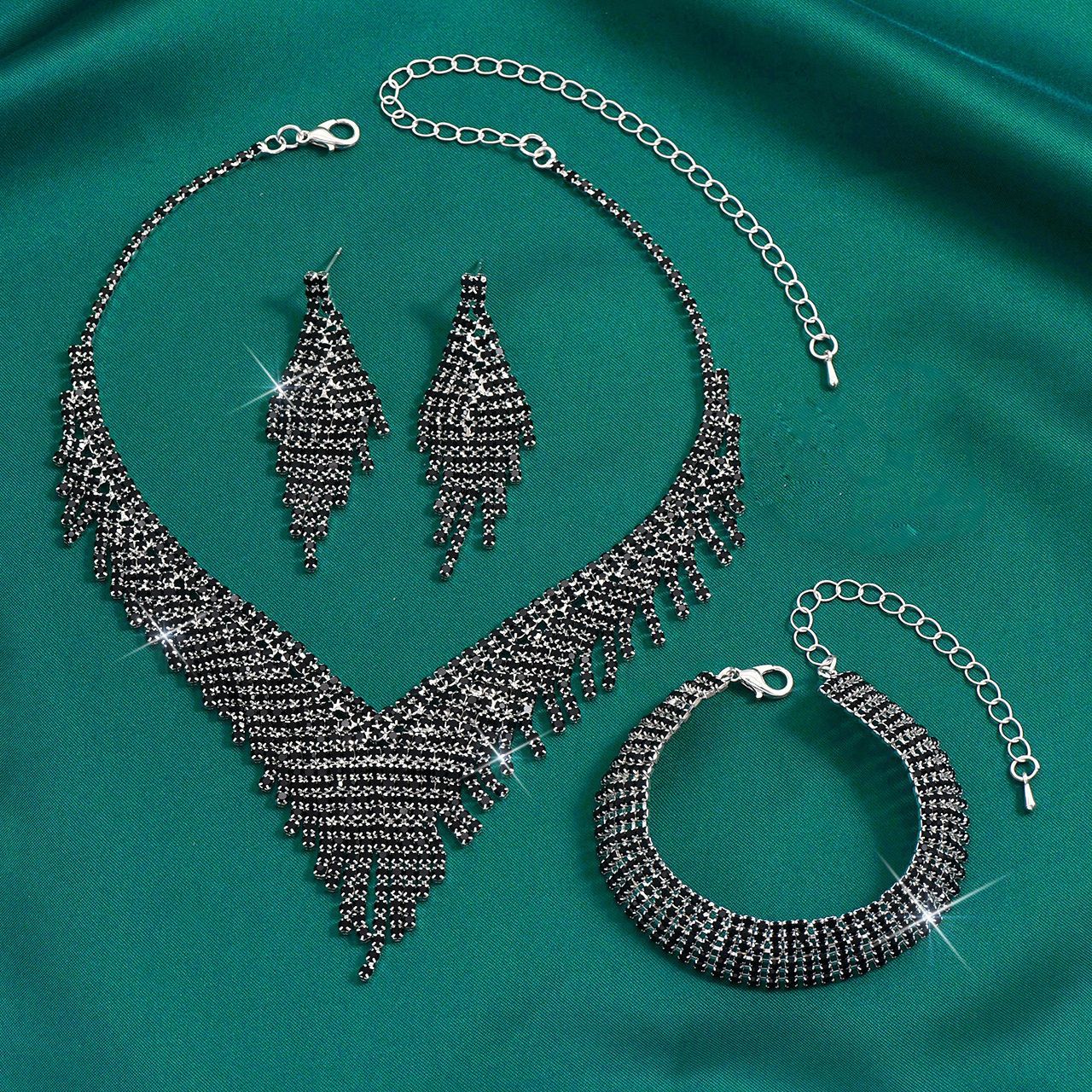 Color: 718b9005 black diamond electroplated silver necklace + earrings + bracelet