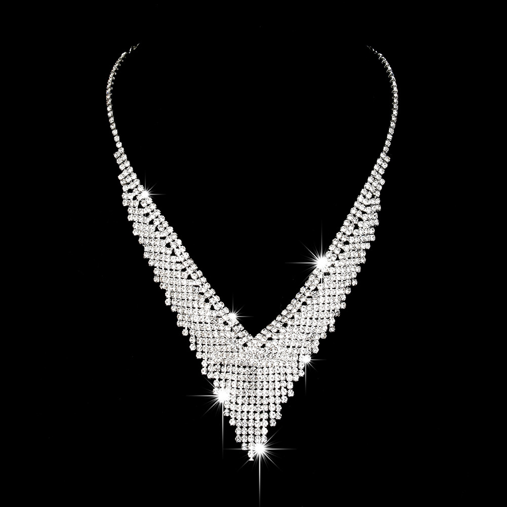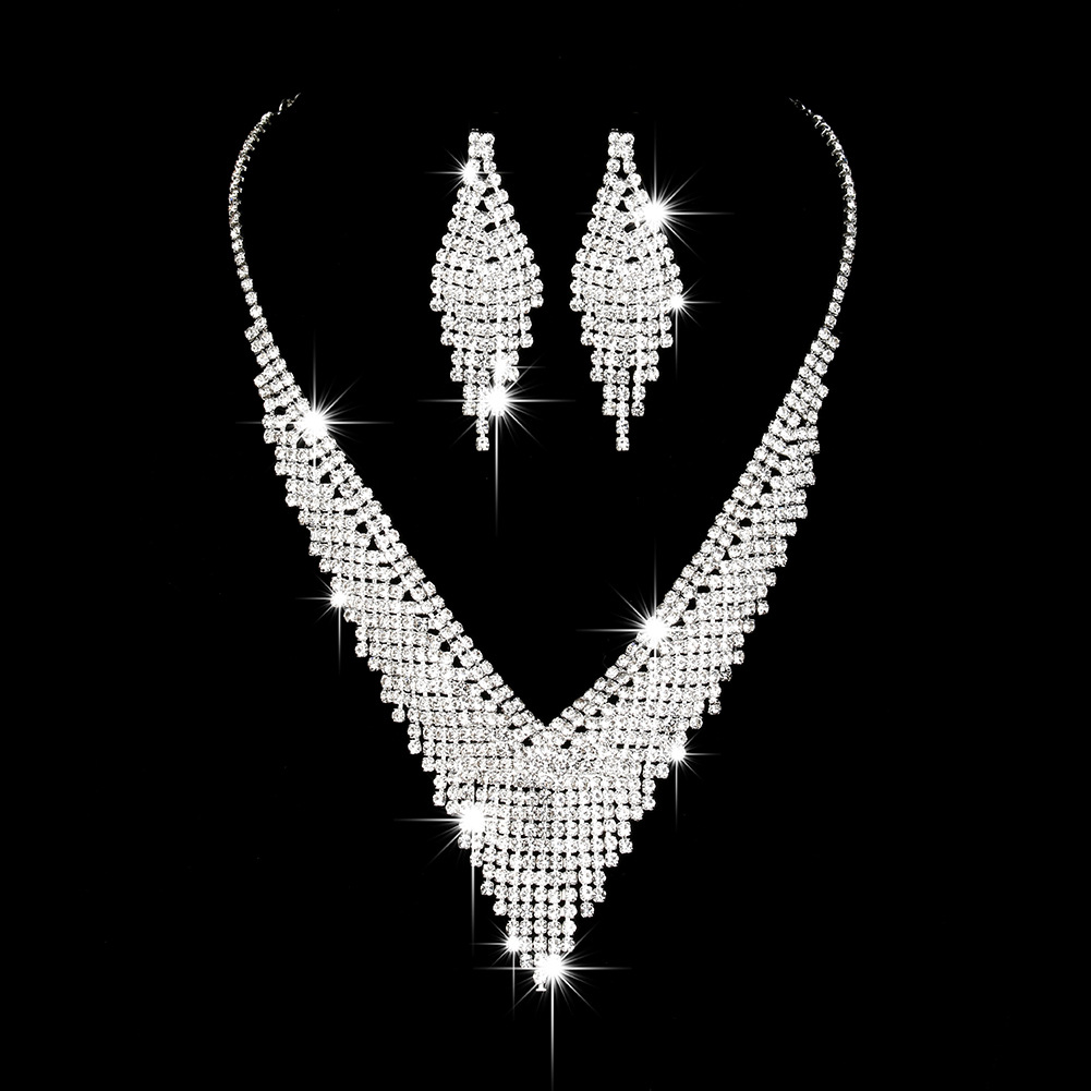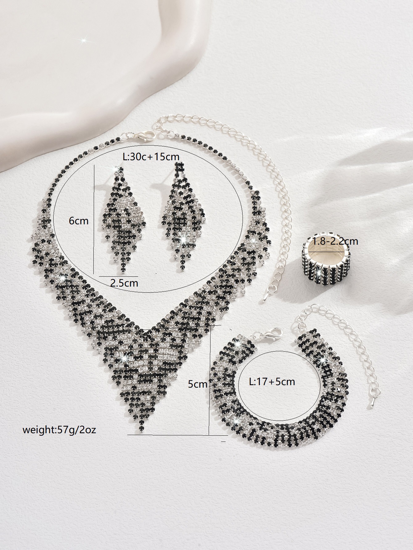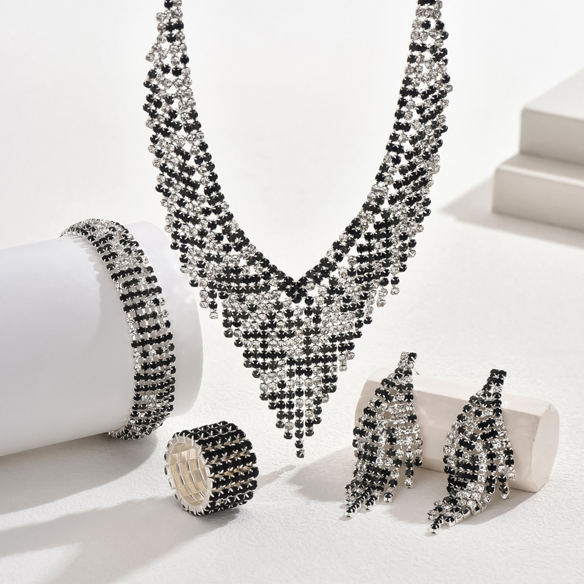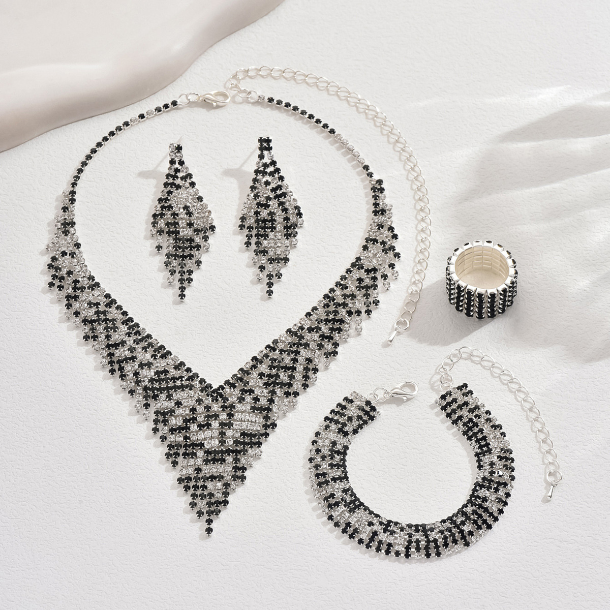 Color: 718b9005 black and white diamond electroplated silver necklace + earrings + bracelet